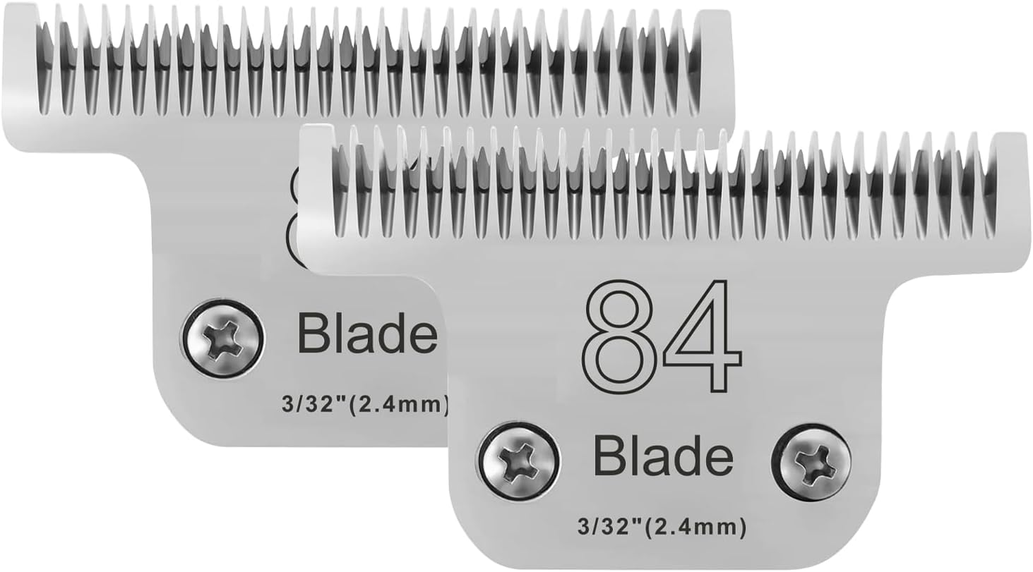 2PCS T84 Blade Dog Grooming Replacement Blades Compatible with Andis Dog Clippers,Dog Clipper Blades Compatible with Wahl KM-10 Series Clippers, Oster A5,Size-T-84 3/32-Inch Cut Length