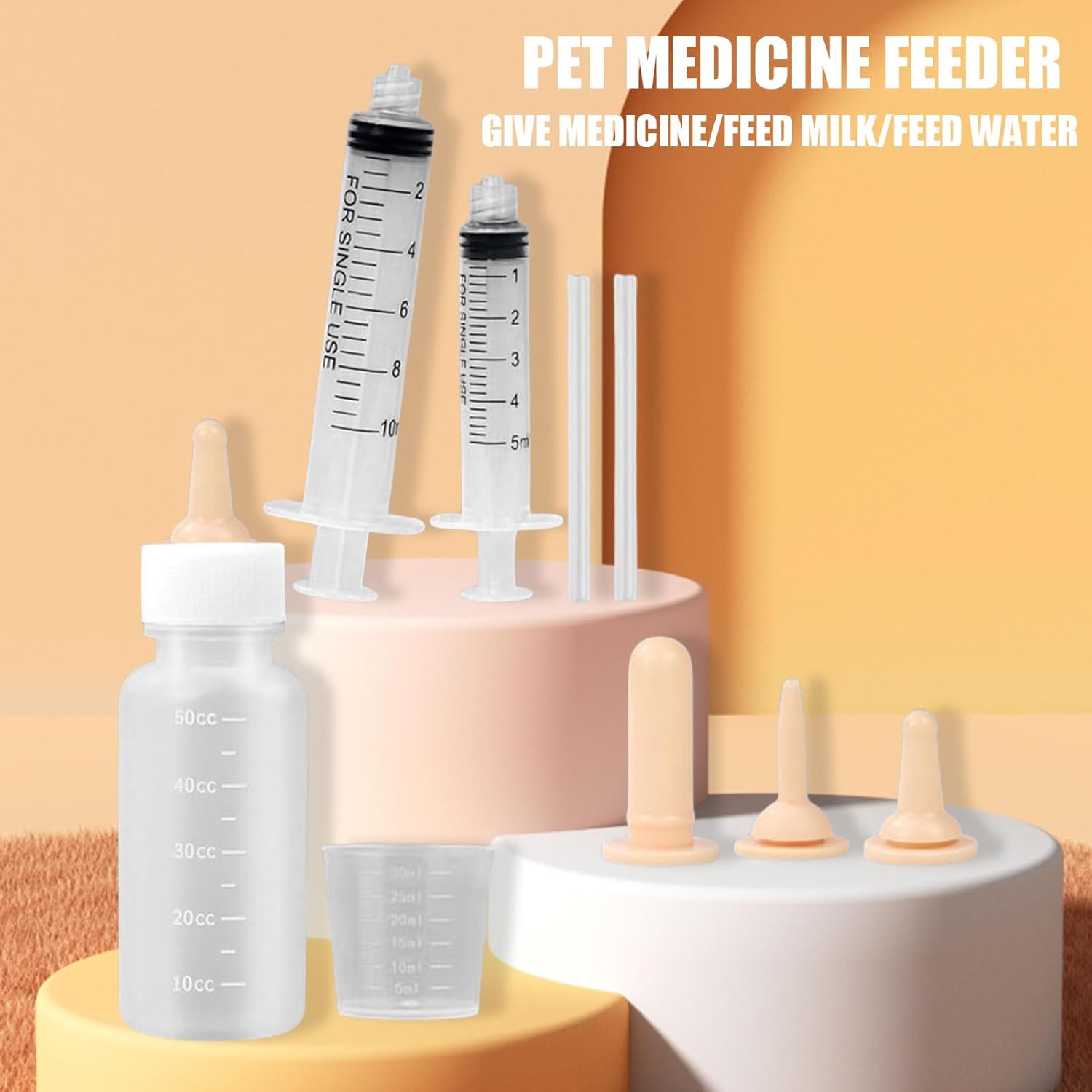 - 【Package Content】You will receive a set of pet nursing syringe, including a feeding bottle, a measuring cup, 3 nipples, 2 Syringes (5ml, 10ml) and 2 feeding tubes, providing options for different pet sizes and feeding preferences.
