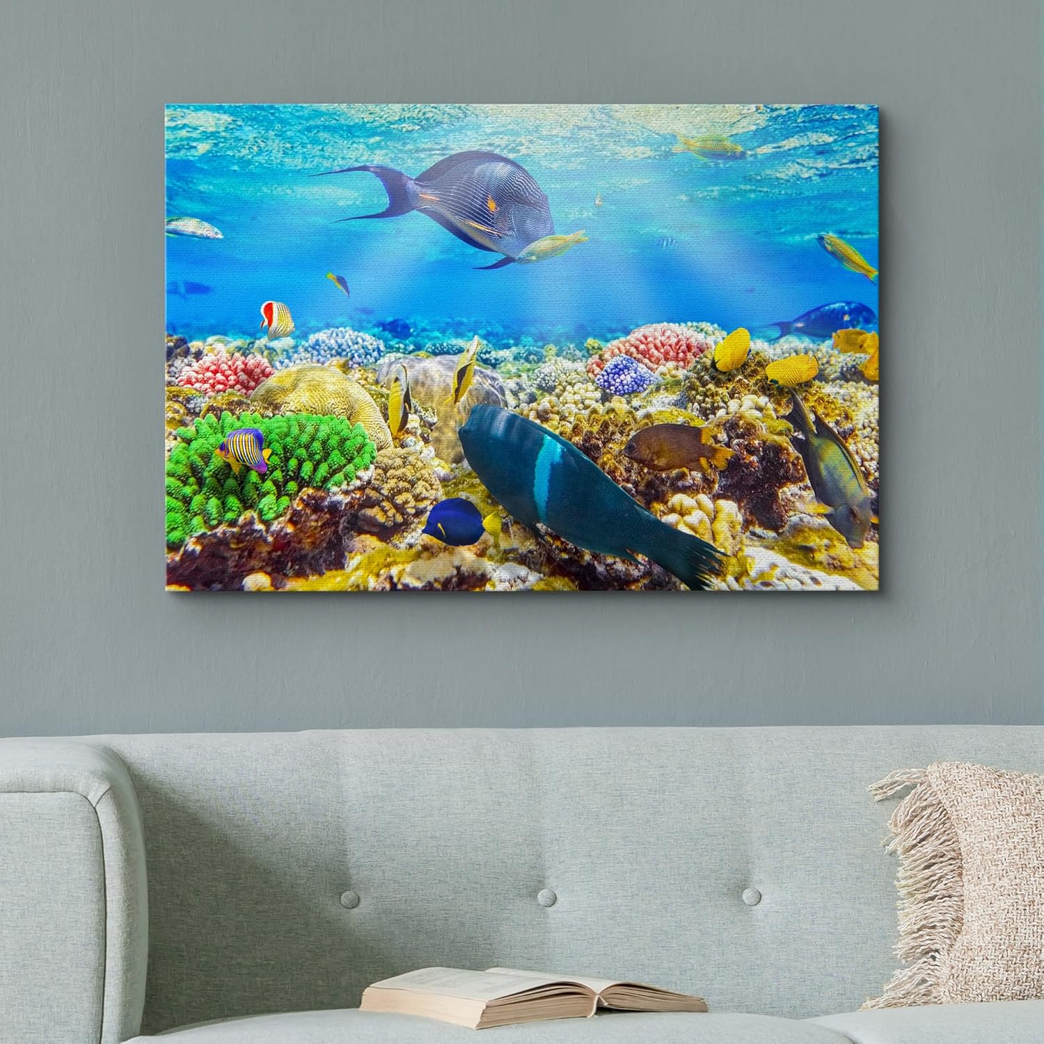 wall26 Canvas Print Wall Art Sunlight Ocean Sea Coral Reef Anemone Fish Nature Animals Photography Realism Rustic Scenic Landscape Wilderness Earth for Living Room, Bedroom, Office - 24"x36"