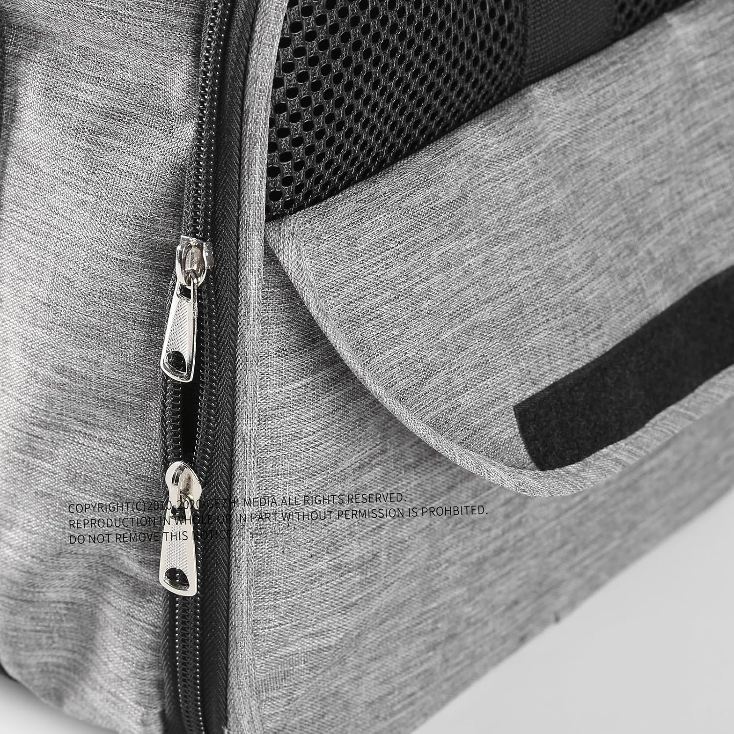 - 2. 【PRIVACY-ORIENTED PET CARRIER】Our pet carrier boasts four-sided breathable mesh panels, ensuring optimal airflow and comfort for your pet. Each mesh panel is equipped with a convenient sunshade, providing excellent privacy and shielding your pet from unwanted public attention. Your pet will feel secure and comfortable, allowing you to enjoy a stress-free outing.