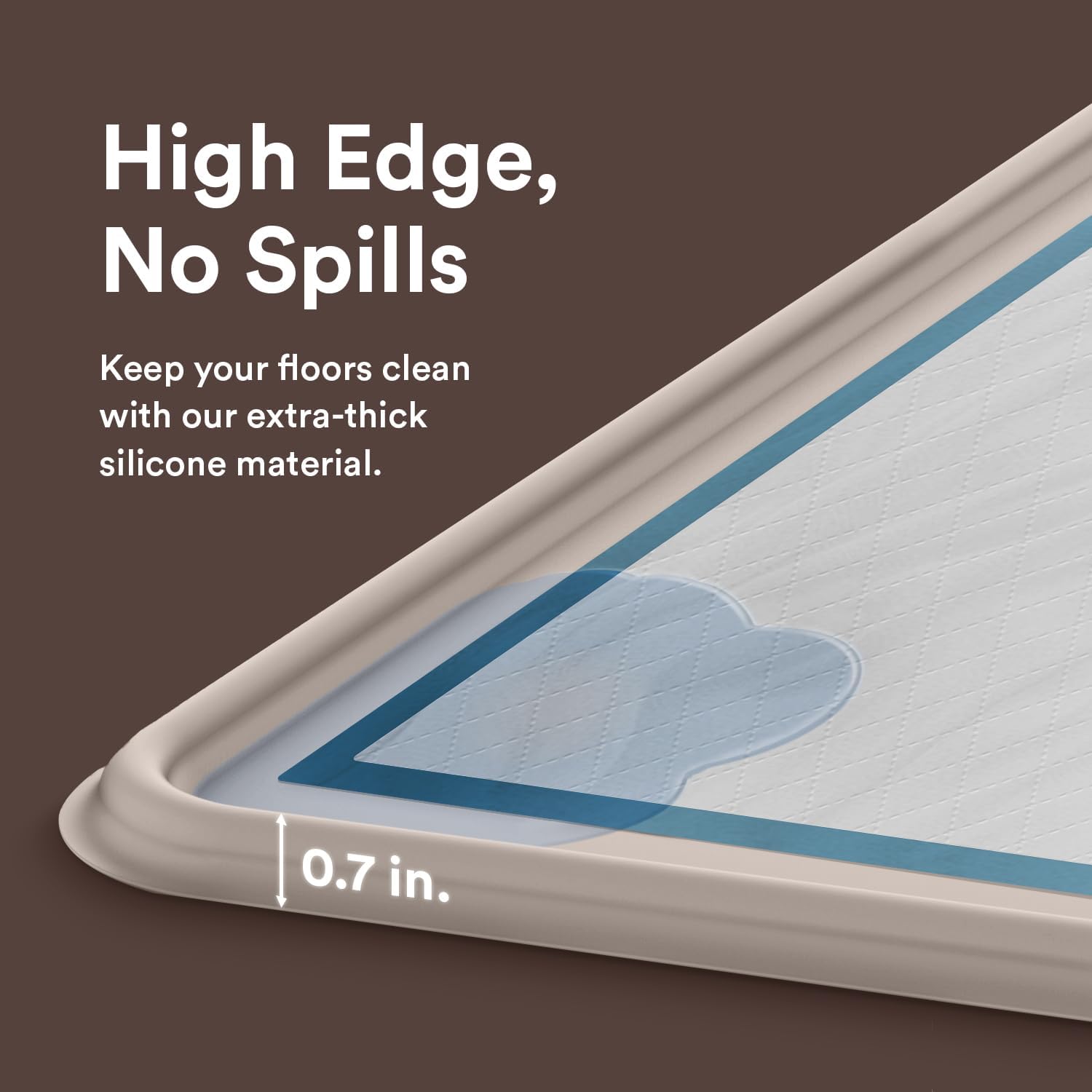 Pee Pad Tray Holder for Dogs - Fits Up to 22 x 22 in. Square Potty Training Pads No Spill Raised Lip High Edge Silicone Mat, Extra Thick and Non-Slip for Indoor Floor Protection (Small, Beige) | eenk