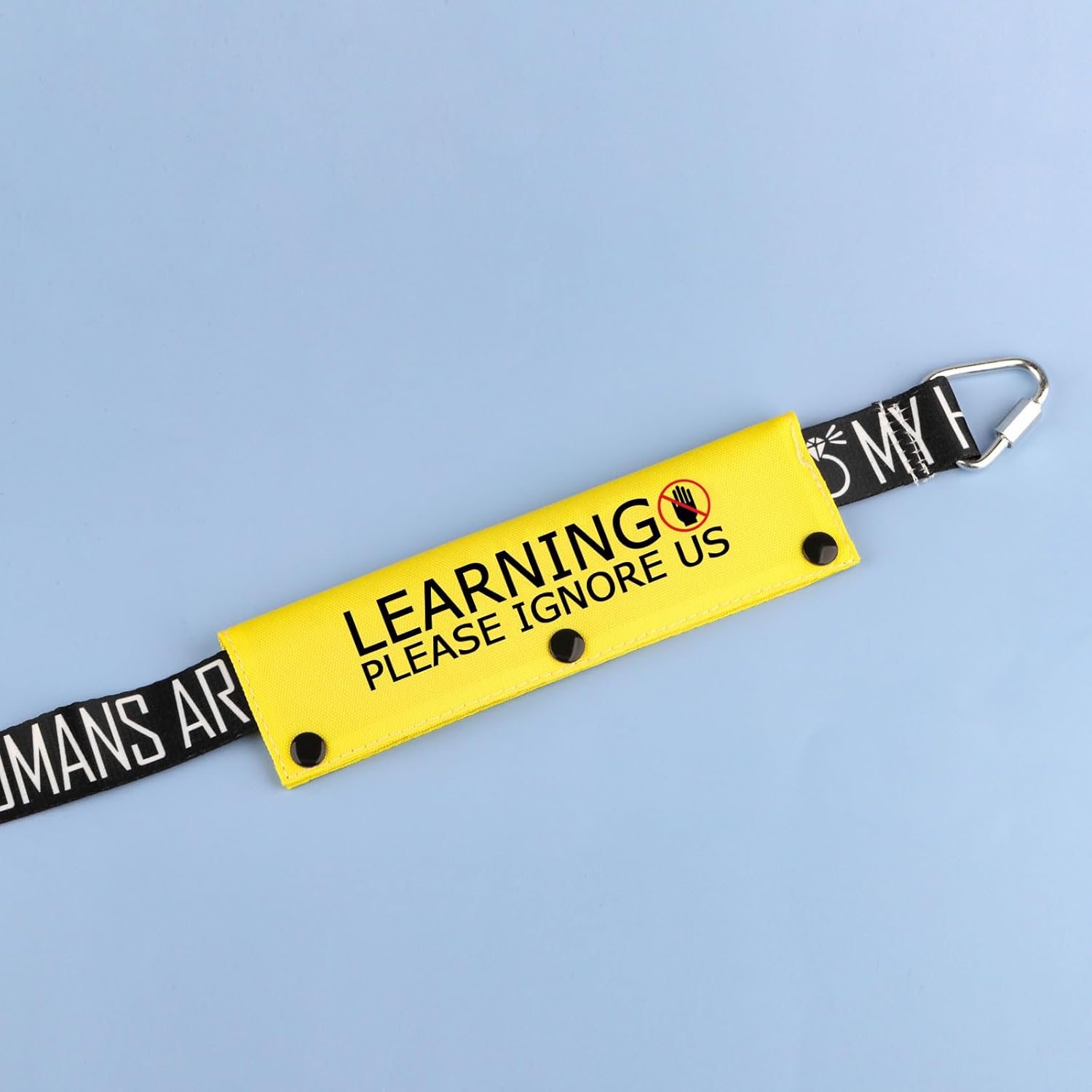 Funny Dog Leash Sleeve Learning Please Ignore Us Dog Leash Wrap Sleeve Alert Tag Pet Birthday Gift (Learning Ignore-YE Sleeve)