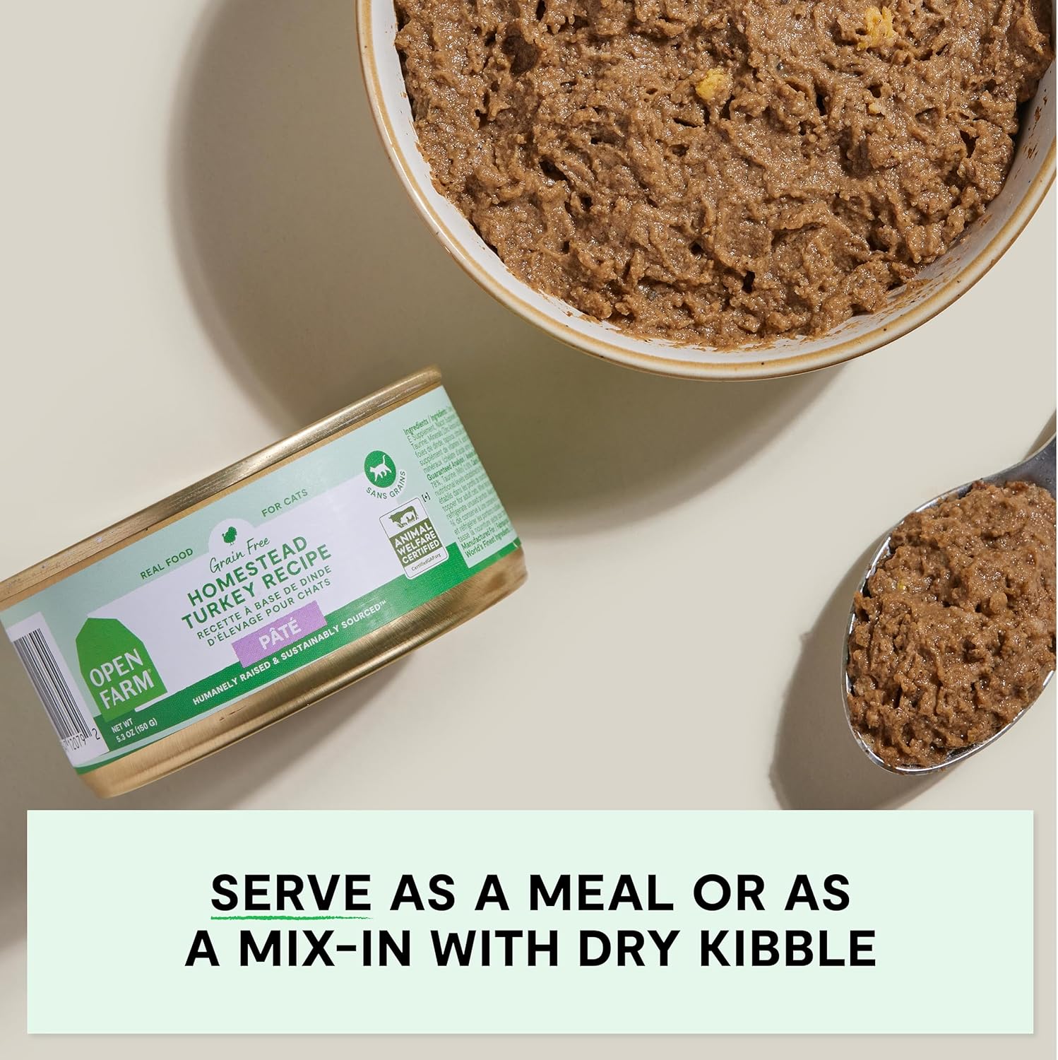 Open Farm Canned Cat Food, Paté for Complete & Balanced Nutrition, Grain-Free and Legume-Free Wet Cat Food, Homestead Turkey Recipe, 5.3oz Cans (Case of 12)
