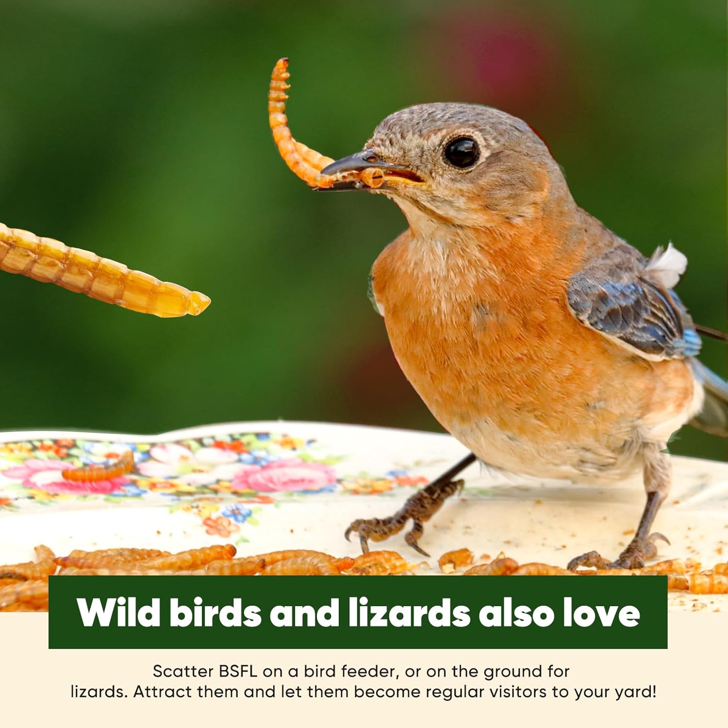 - Convenient Package & Storage - The BSFL mealworms are packed by a sealed bag, so you can zip it up after wrapping it. A thick carton outside the bag so the BSFL meal worms won’t be squeezed. After using, please just seal the bag and settle it in a dry place for 24 months validity.