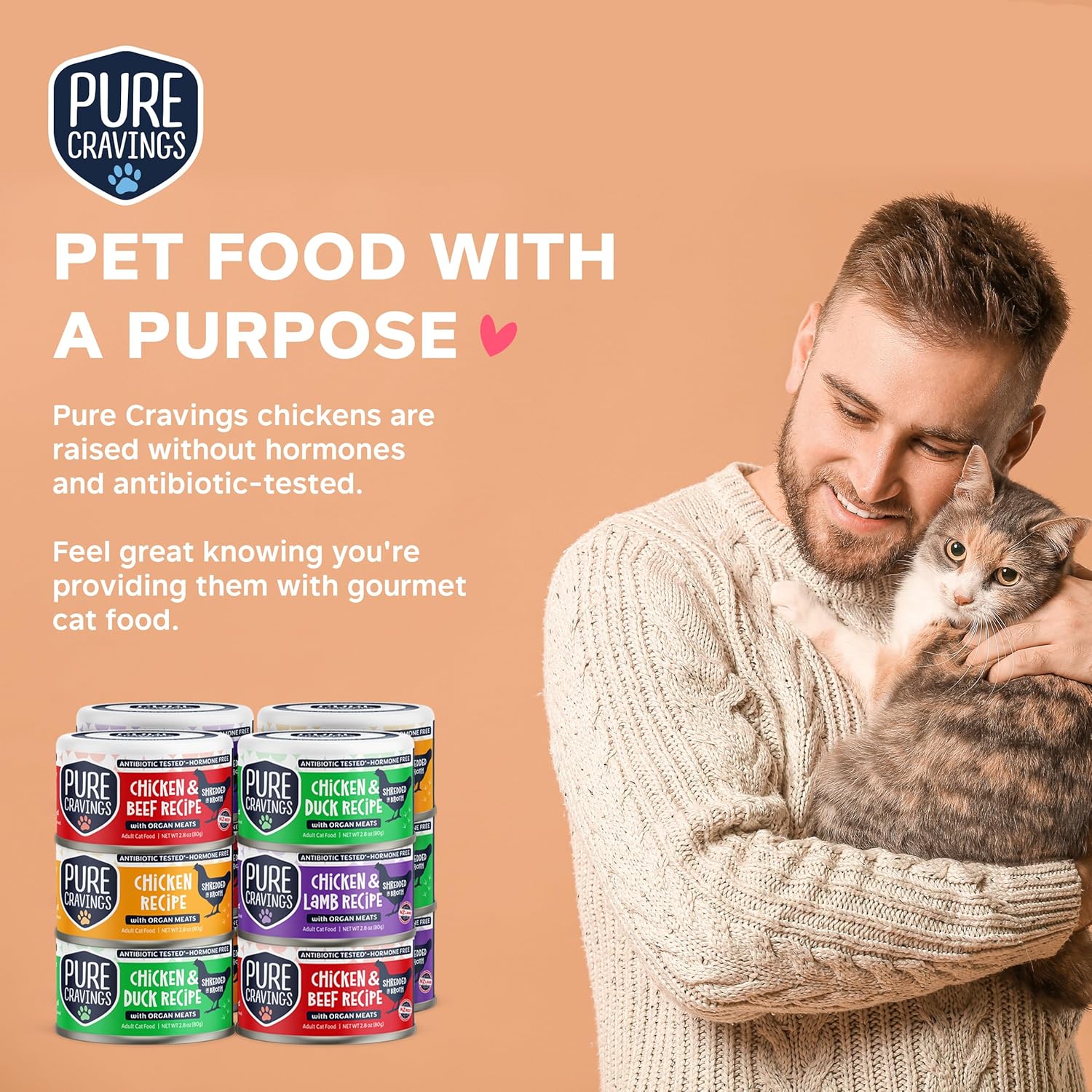 - GOURMET FOOD FOR CATS – Treat your furry companion to the finest dining experience with our premium Shredded Chicken with Organ Meats in Broth, featuring a variety of tantalizing recipes including topped with Chicken, Duck, Beef, or Lamb.