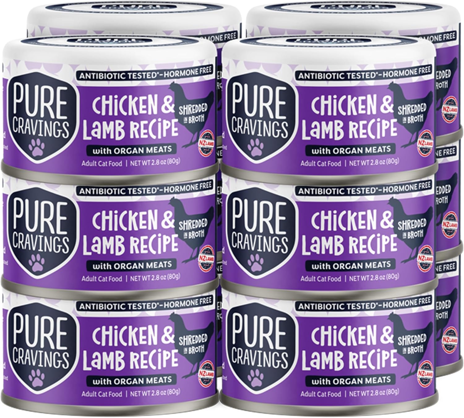 Chicken and Lamb Recipe in Broth, Shredded Wet Cat Food, Grain-Free Protein, Non-GMO, 12 Pack