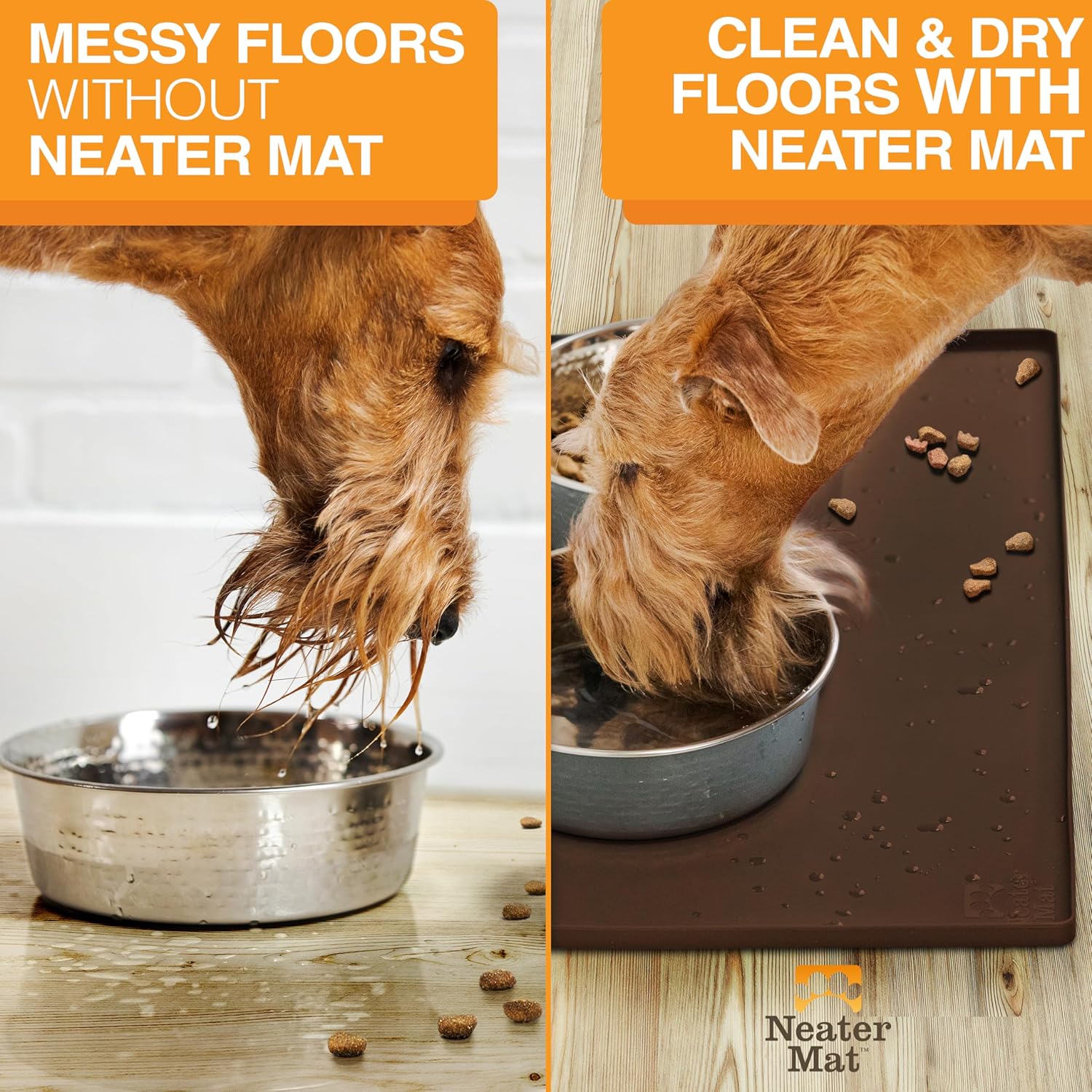 Neater Pet Brands Neater Mat Pet Mats for Food and Water, Cat & Dog Bowl Mat Waterproof Silicone, Feeding Tray, Dog Food Mats for Floors, Placemat w/Raised Edge for Under Bowls, 16” x 10”, Brown