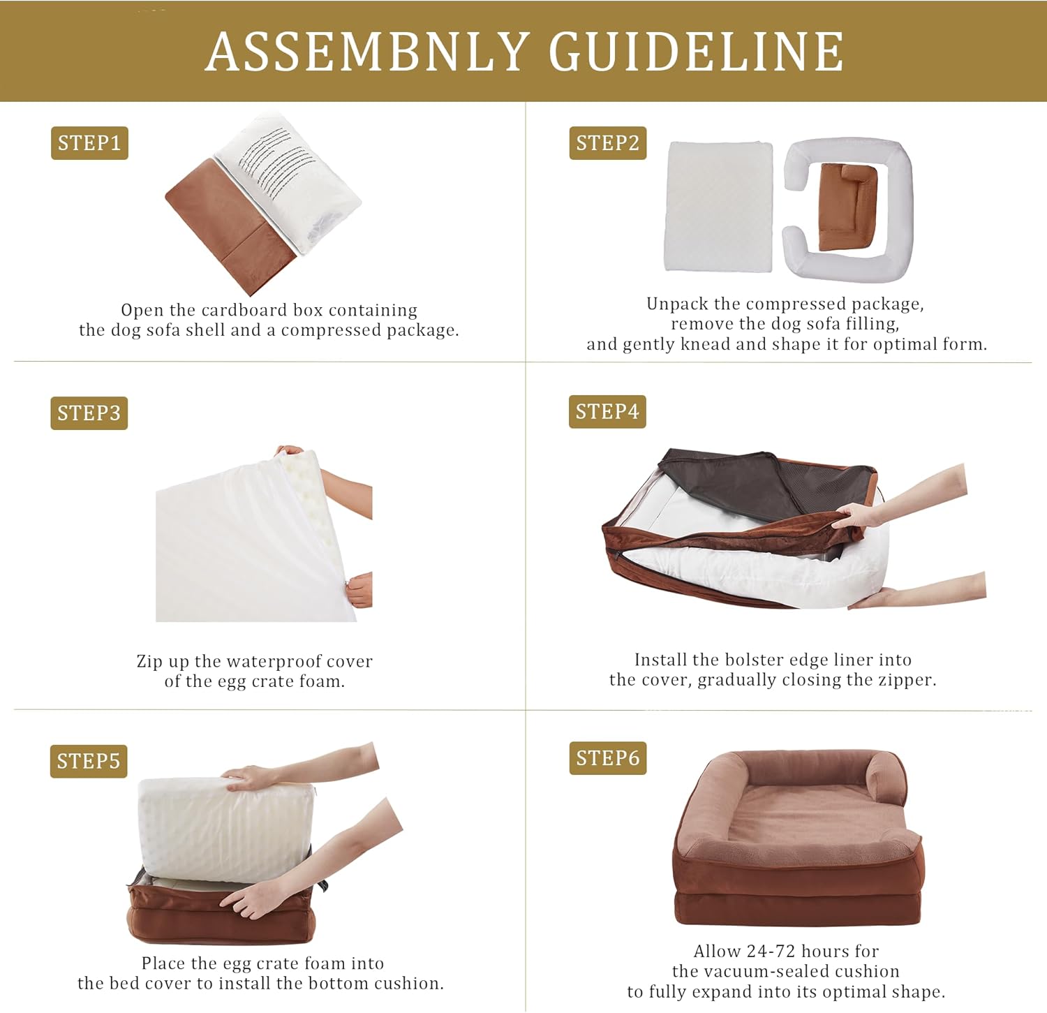 Bedfolks Orthopedic Dog Bed, Big Waterproof Dog Sofa Bed for Large Dogs, Egg Foam Pet Couch Bed with Removable Washable Cover and Nonslip Bottom, Brown