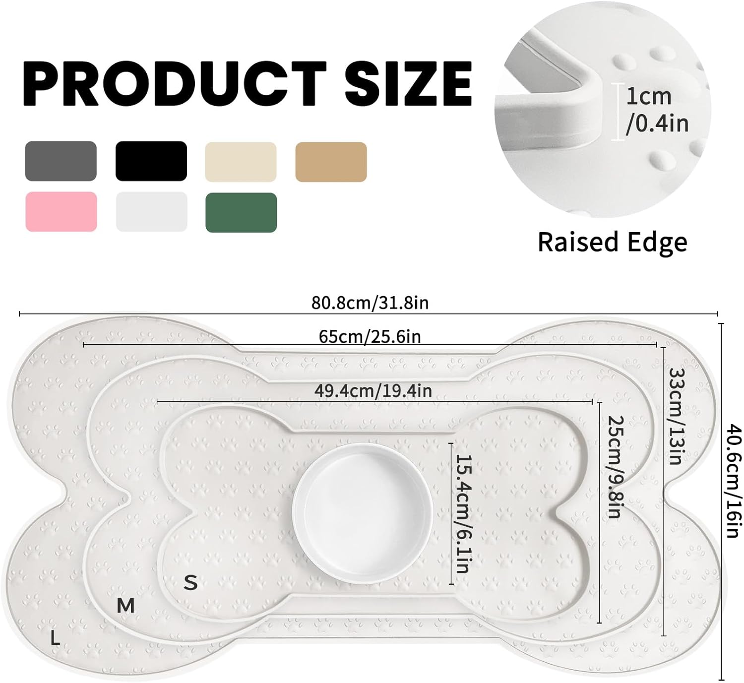 - Raised Edge - The high edge of this feeder mat keeps food and water within the tray and prevents spillage onto a clean floor. Keep your living space tidy and clean, say goodbye to messy floors, you just need to clean the dog bowl mat regularly.