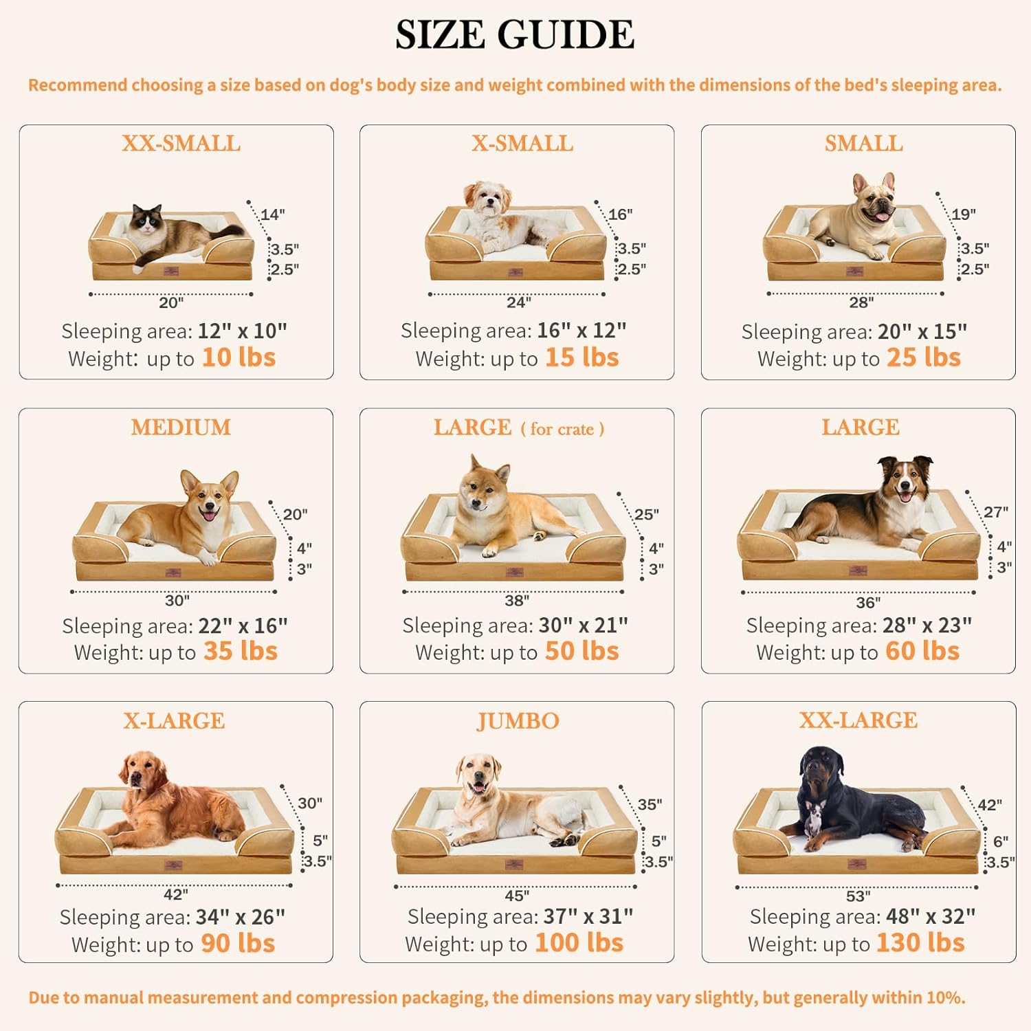 Comfort Expression Large Dog Beds Waterproof, Orthopedic Dog Beds for Large Sized Dogs, Comfy Pet Bed Sofa with Washable Removable Cover & Non-Slip Bottom(Khaki)
