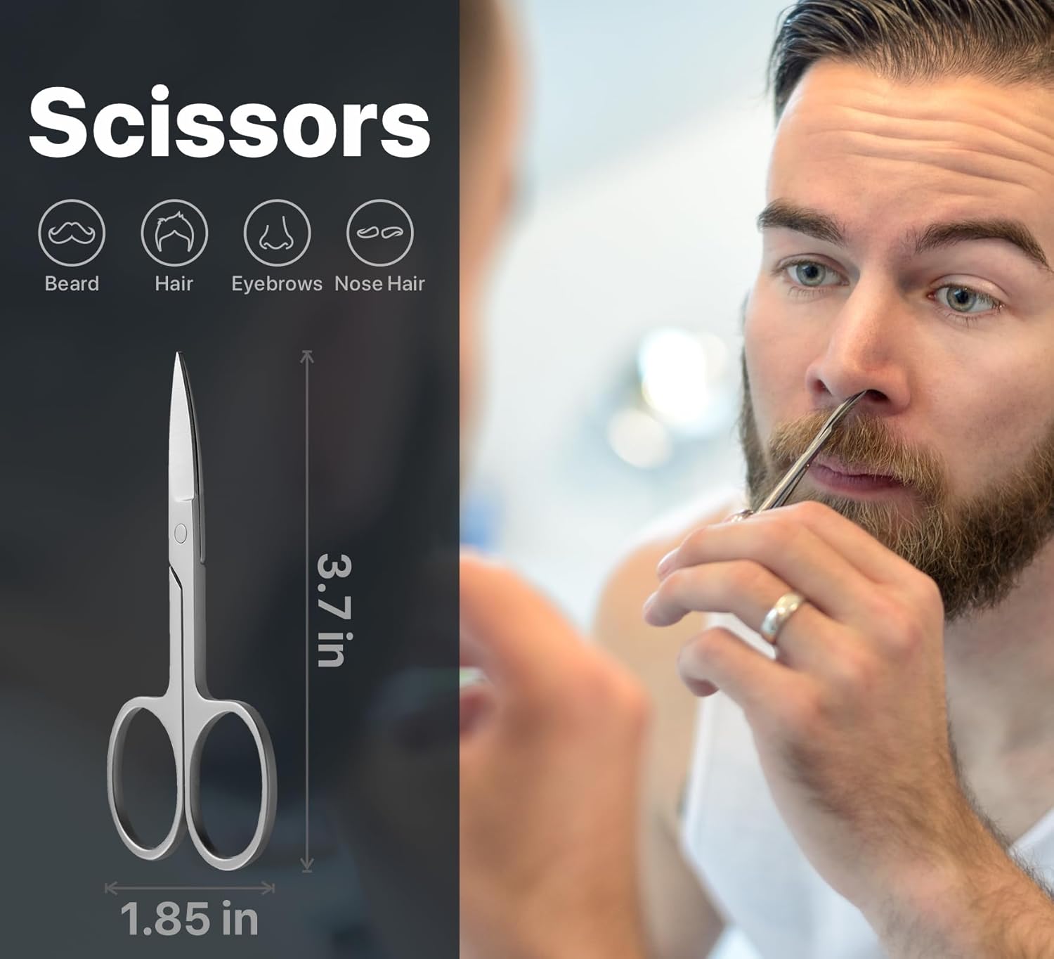 - [Fingerprint-Resistant]:Our nail clippers and scissors boast a sandblasted finish that resists fingerprints, ensuring a clean grip. The satin-finished tweezer and nail file add comfort and style to this comprehensive grooming set.