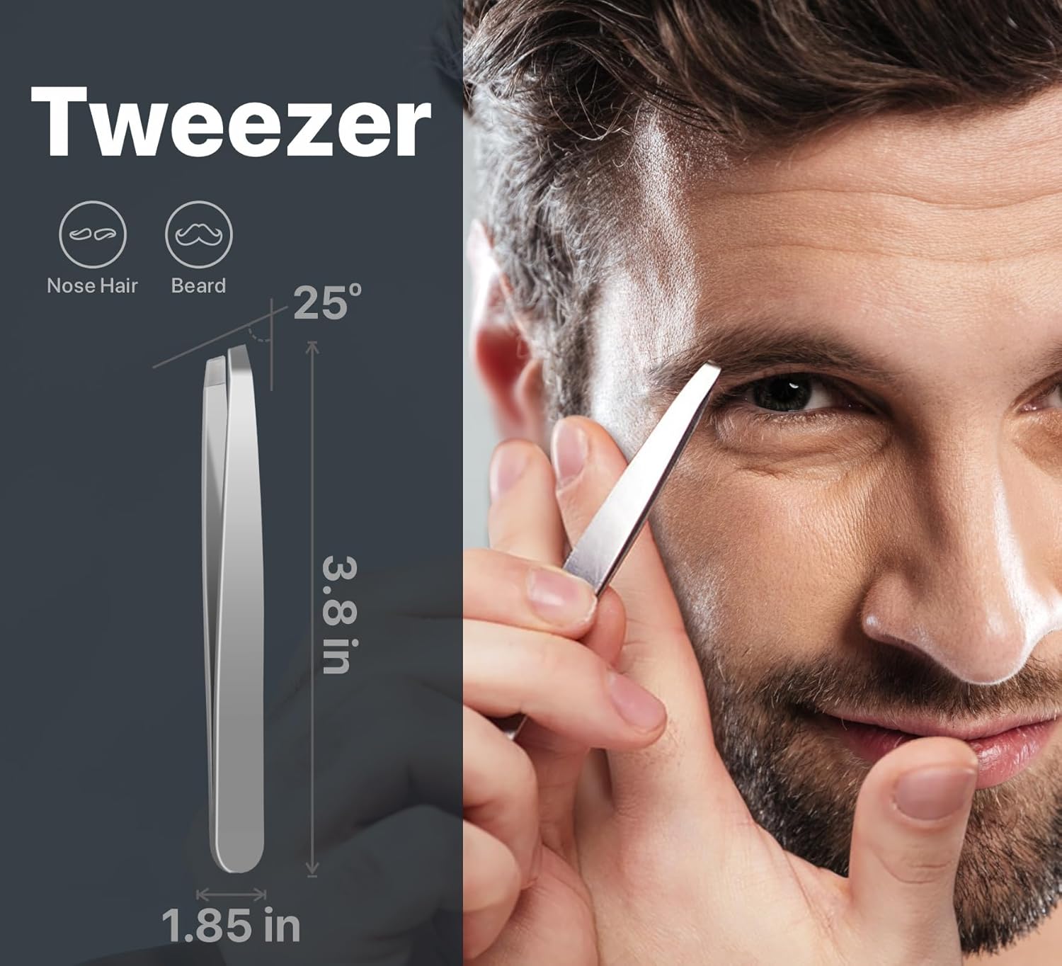 - [Stainless Nail Care Kit]: Complete set with flat nail clipper, slanted nail clipper, nail file, tweezer, cuticle scissors. High-quality steel with sandblasted and satin finishes ensures durability and style for a professional grooming experience.