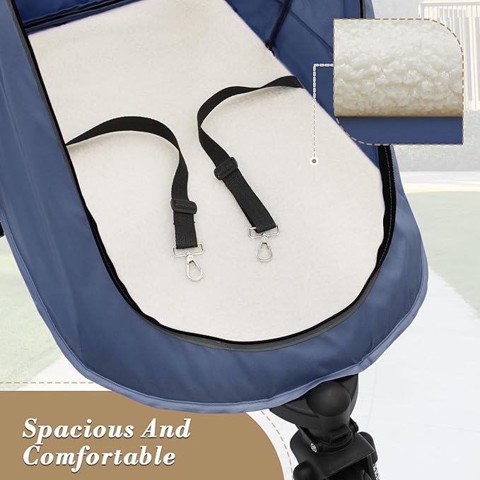 - Convenient Dual-Entry System: Specifically designed with the well-being of older or pets with mobility challenges in mind, our stroller features dual zippered doors both at the front and back. This thoughtful design ensures easy access for pets, eliminating the need for them to turn around when entering or exiting, presenting a considerate gift for your cherished companions.