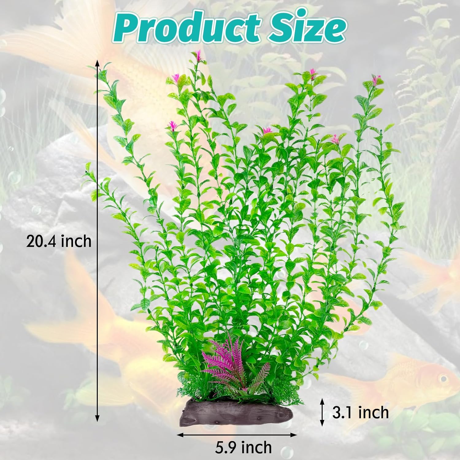 - TALL AQUARIUM PLANTS EASY TO MAINTAIN : Aquarium plants plastic do not require specialized lighting, fertilizers or carbon dioxide. Compared to real plants, large aquarium plant is very easy to clean, saving time and effort and eliminating the hassle of maintenance. These fish tank plants for decorations look lifelike and can be used for a long time, making it easy for you to enjoy the wonders of the aquarium world. Artificial aquarium plants size: 20.4 inches (H), ceramic base: 5.9 × 3.1 inches.1 pcs artificial aquarium plant to make your aquarium vibrant and more beautiful