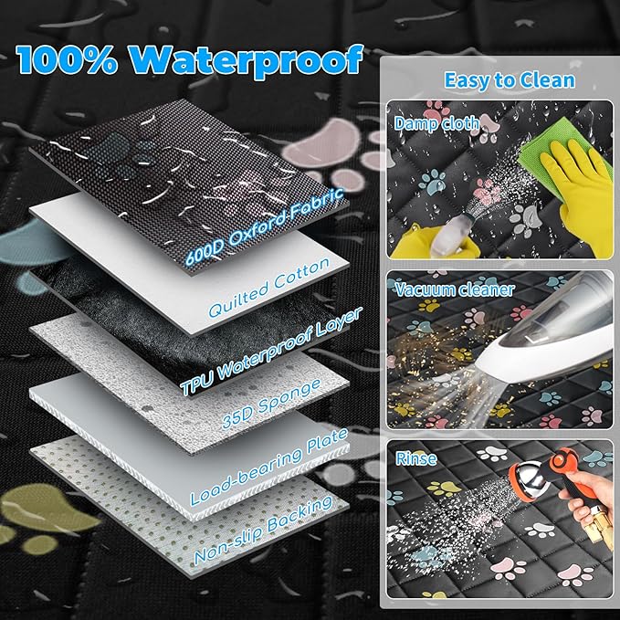 - Prevent Falls & Easy Care: The dog car hammock with zippered side flaps can keep dogs from falling to the floor, and protect your backseat and car doors from scratches, mud, liquid and hair. The waterproof 600D Oxford material is easy to clean with a damp cloth or vacuum