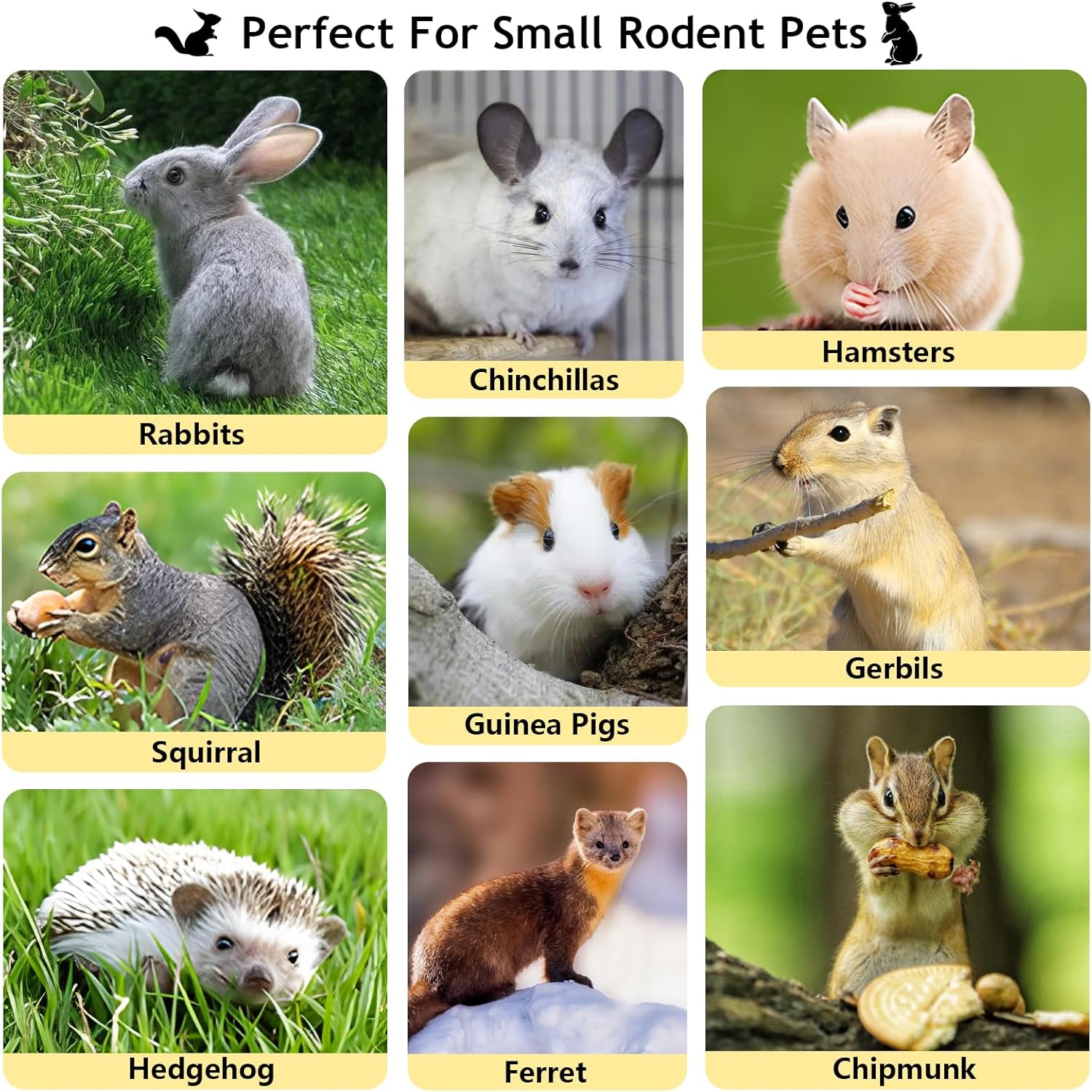 - Suitable for small animals, such as Hamster, dwarf rabbit,bunny, chinchilla, guinea pig, squirrel and so on