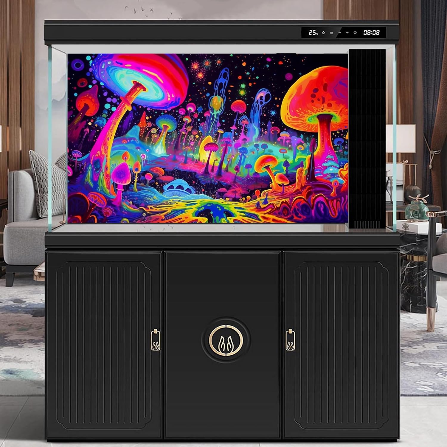 Fantasy Mushrooms Aquarium Background Abstract Mysterious Mushroom Landscape Terrarium Background Amazing Rainbow Mushrooms Theme Fish Tank Backdrop Poster Wallpaper Decorations Vinyl 60x24in