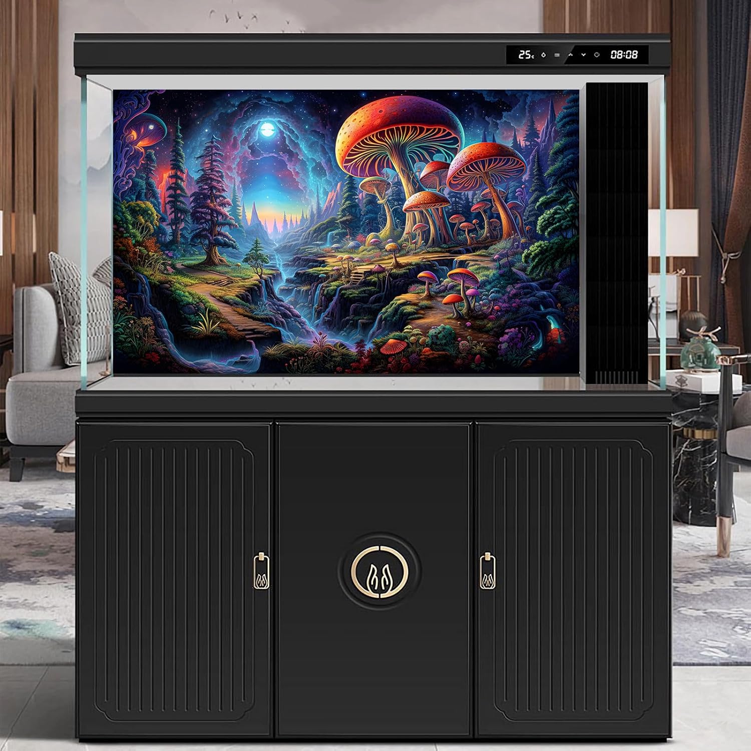 Forest Aquarium Background Fantastic Cartoon Forest Landscape with Mushrooms and Flowers Terrarium Background Fantasy Pine Tree Mysterious Mushroom Theme Fish Tank Backdrop Poster Decor 36x18in