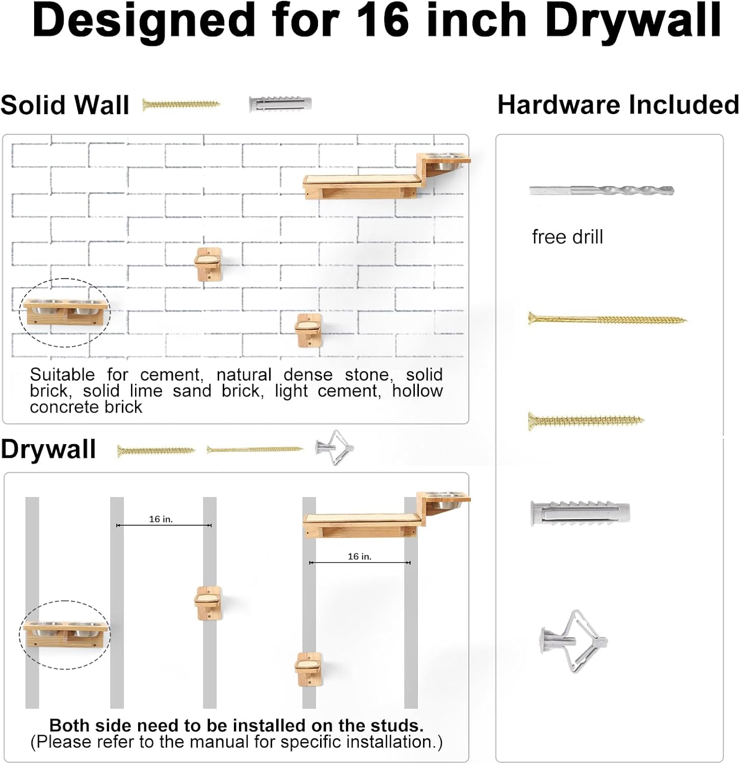 - SAFE AND STABLE - This set of cat furniture is designed for 16 inch drywall, simplify the installation and maximize stability. It passed loading test, can easily hold up to 35 lbs. The climbing structure covered with sisal mat, anti-slip for cats safe climb.