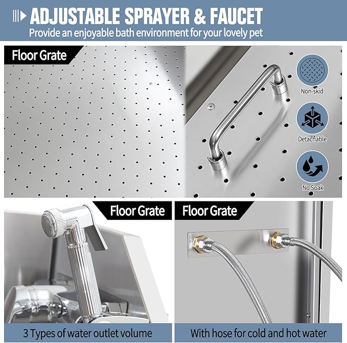 - 🐶38" Dog Washing Station: Constructed from premium 304 stainless steel, this bathing station embodies durability and corrosion resistance. Its sleek design ensures effortless cleaning, offering not only a pet bathing haven but also a functional daily sink