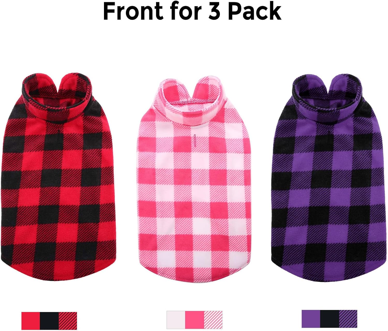ASERU Dog Sweater 3 Pack - Plaid Dog Fleece Vest - Soft Pet Pajamas, Warm Winter Coats for Small & Medium Dogs