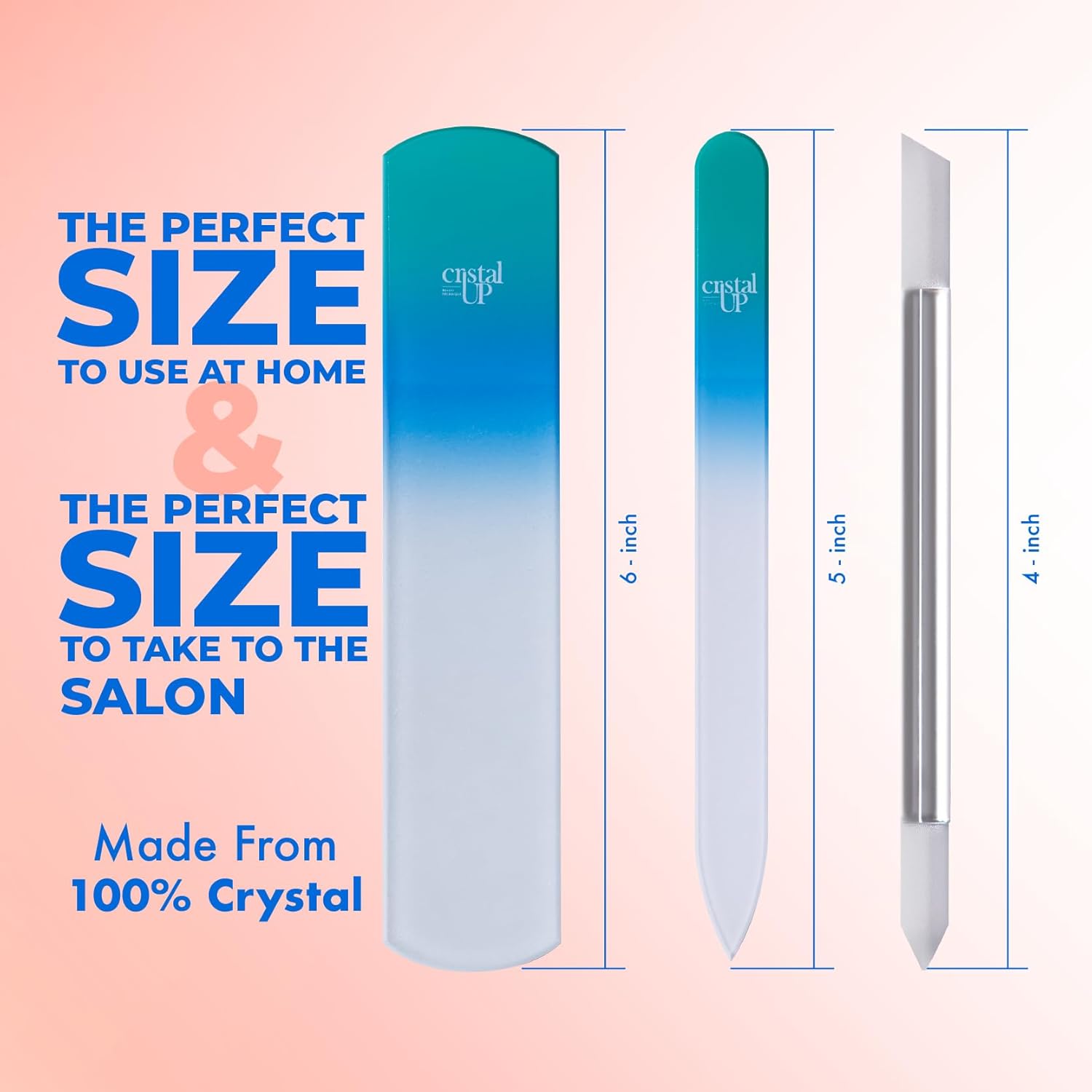 Starter Crystal Care Set - 3PC Includes Glass Foot Scraper, Medium Crystal File, and Cuticle Stick for Natural Nails, Glass File Kit