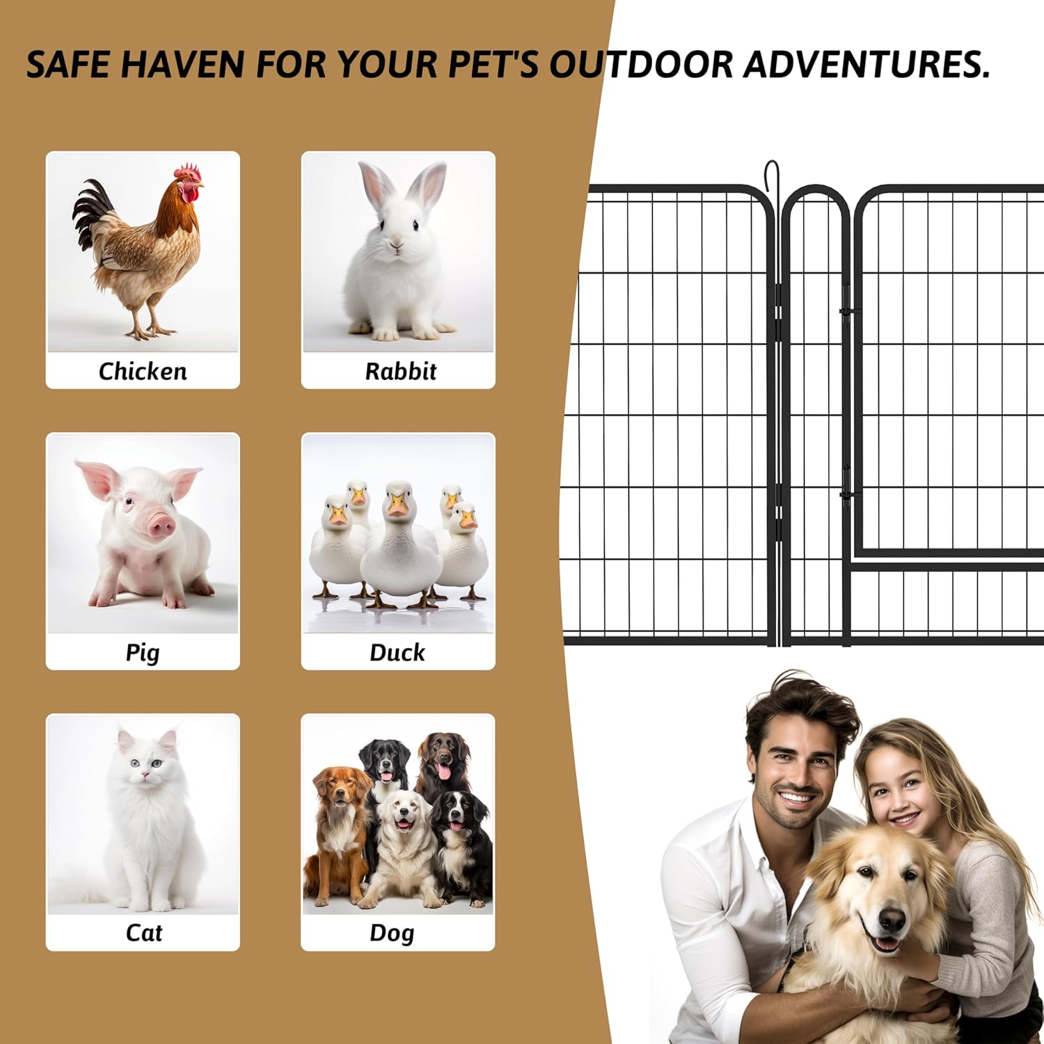 - ๐ถ๐ฉ๐ฒ๐ฟ๐๐ฎ๐๐ถ๐น๐ฒ ๐ฆ๐ต๐ฎ๐ฝ๐ฒ ๐ข๐ฝ๐๐ถ๐ผ๐ป๐:Our outdoor dog fence panels are 28'' wide and 40'' high, including 12 panels and 1 gate, allowing you to set it up in various shapes like circles or rectangles to suit your space and your pet's needs. This tall dog playpen is ideal for small, medium, and large animals, and the 40'' height ensures their safety