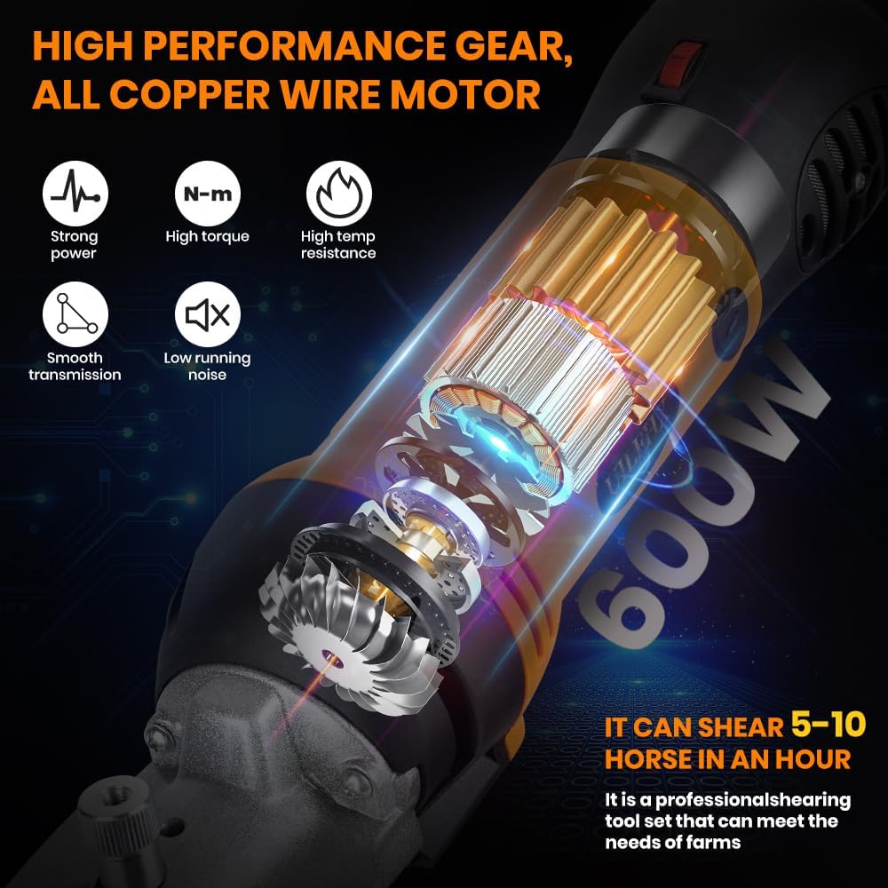 Horse Clippers Professional Electric horse Grooming Kit, Shaving Equine Clippers for Horses Goat Cattle Thick Coat Animals, 6 Speeds Large Heavy Duty Farm Livestock Haircut Trimmer (600W, 2 Blades)