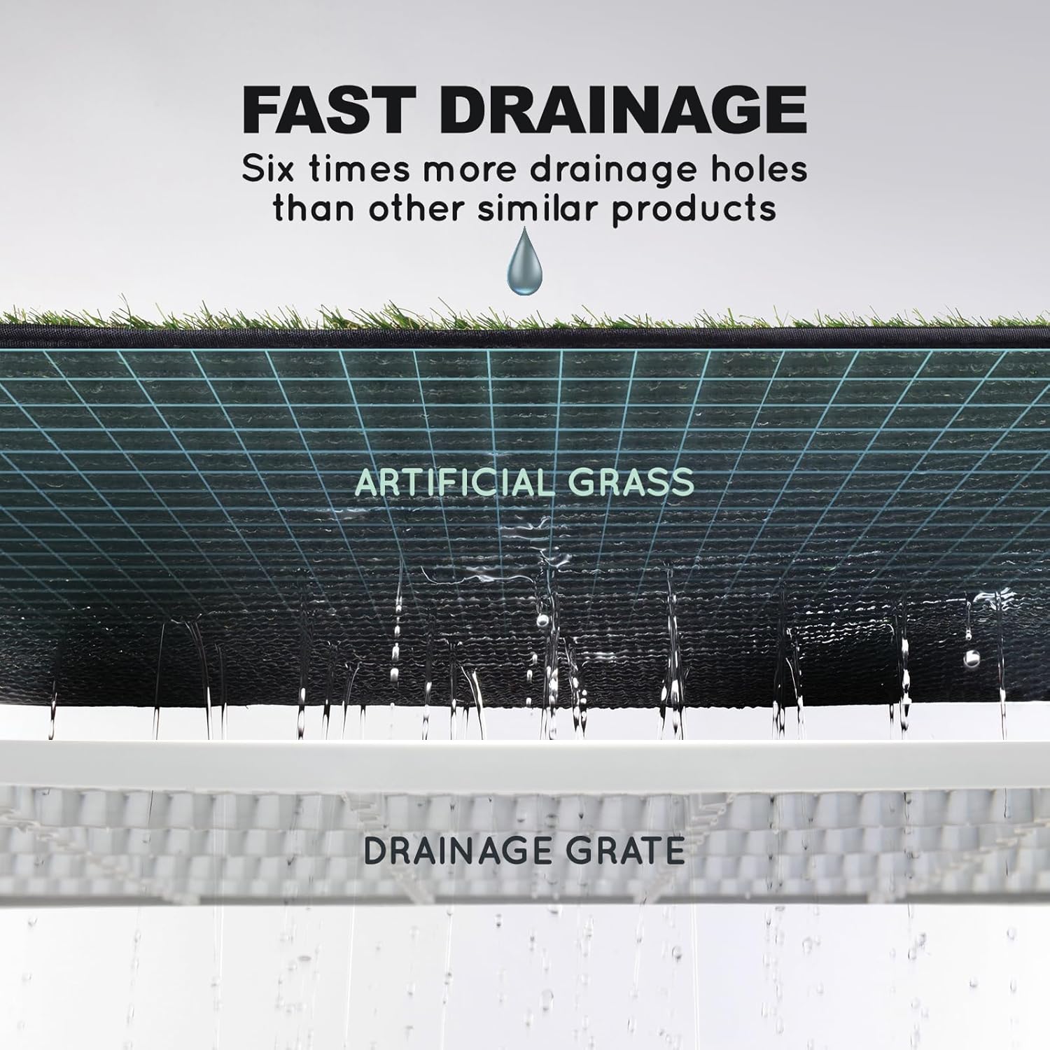 - URINE DRAINAGS QUICKLY AND LESS STINK : With 6 times more drainage holes on grass, the urine will be drained much more quickly to the pee pads than similar products, in order to reduce urine stink