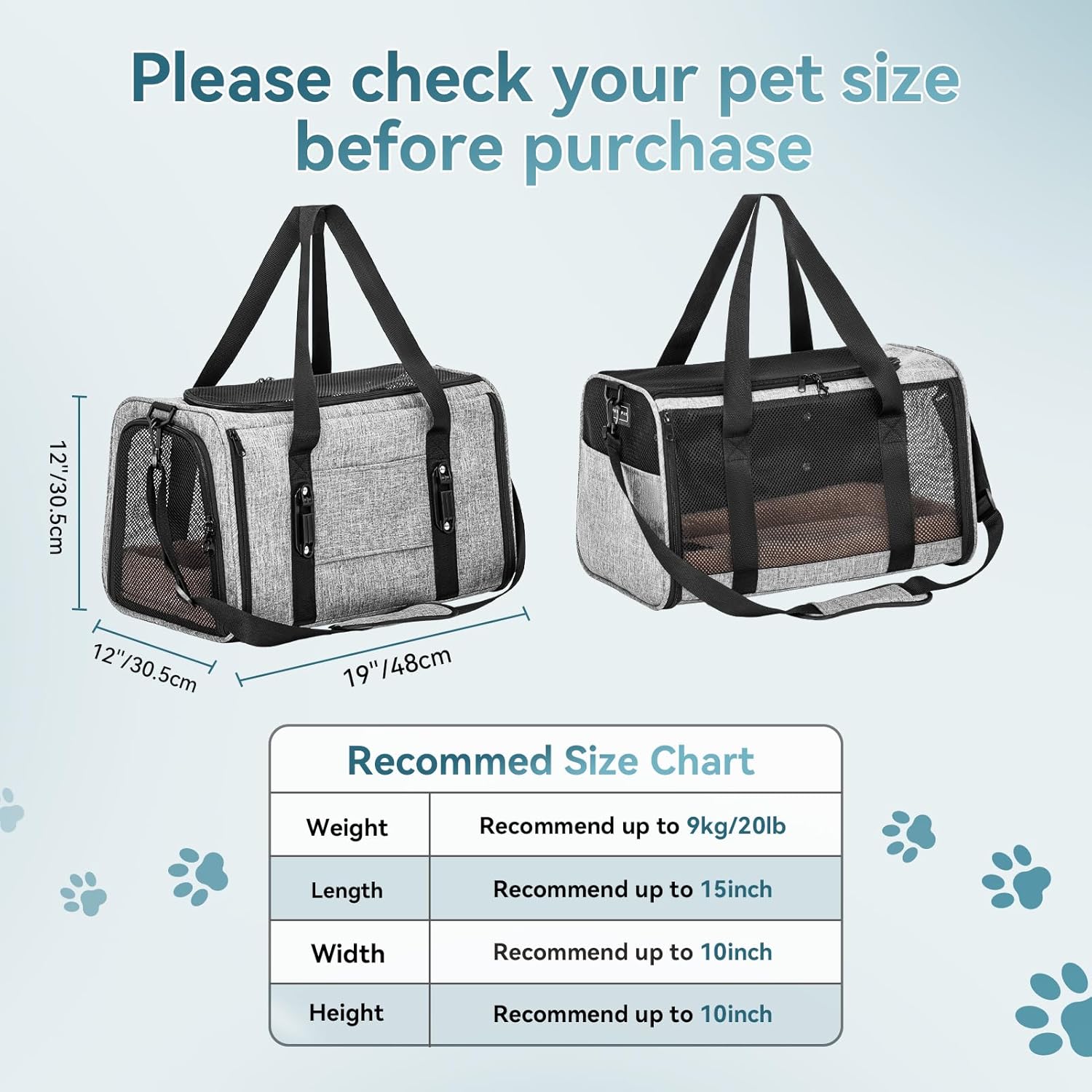 Petsfit Pet Carrier for Large Cats, Cat Carrier for Medium Cats and Puppy up to 20lbs, 4-Sided Breathable Mesh, Escape Proof and Locking Zipper, Sturdy Structure,Grey