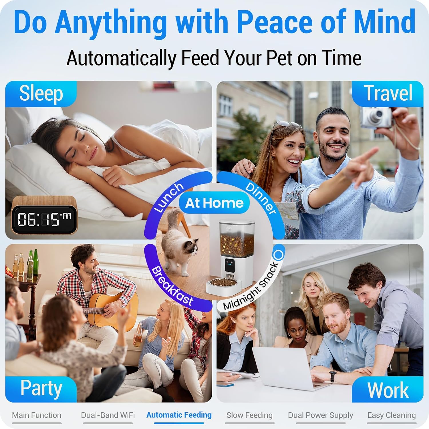 Automatic Cat Feeder with Slow Feed: 5G WiFi Automatic Dog Feeder with APP Control, 7L Auto Cat Food Dispenser with Alexa for Multiple Pets, Detachable for Easy Cleaning - 29 Cup