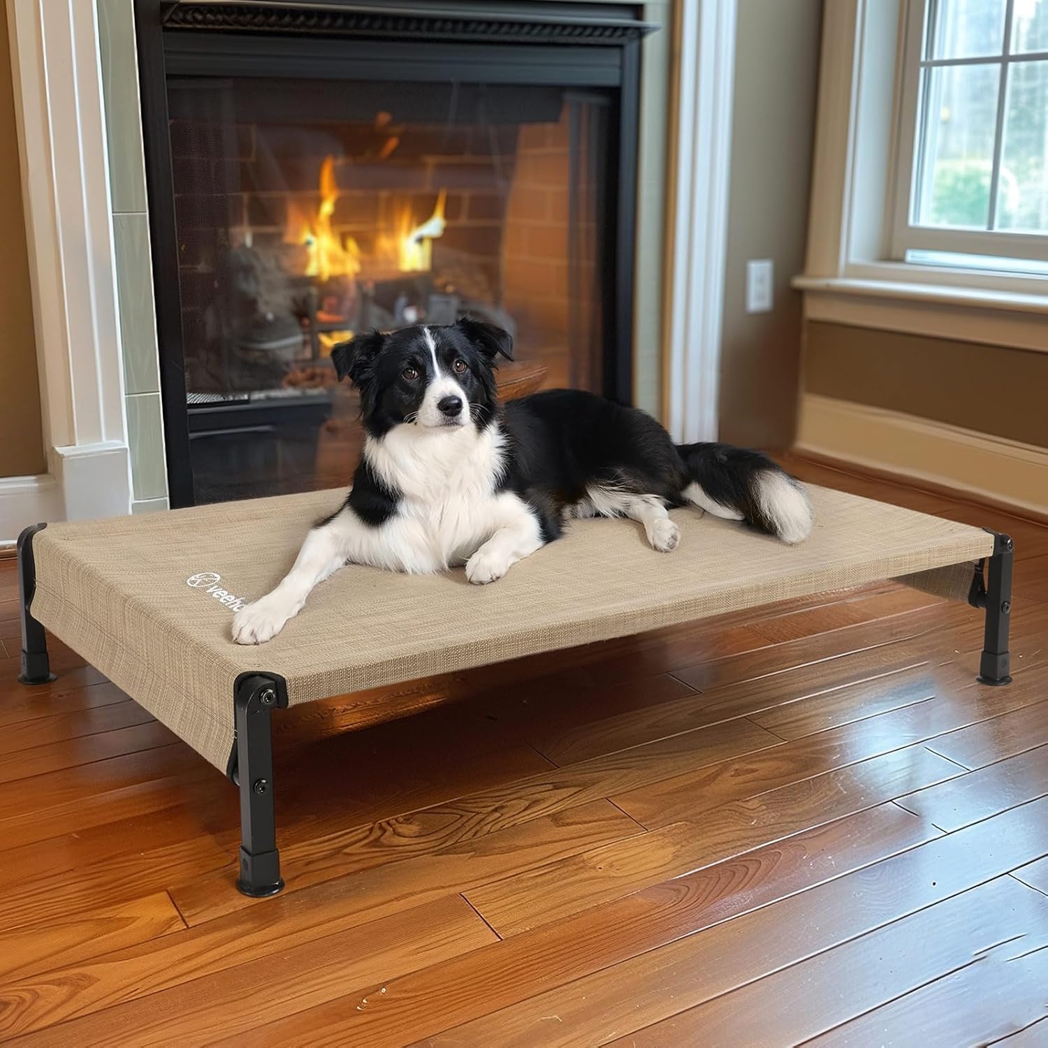 Veehoo Cooling Outdoor Dog Bed, Heavy Duty Elevated Pet Bed with Washable & Breathable Teslin Mesh, Non-Slip Silicon Feet, Dog Cot Bed with Support Hem, 41" x 27", Beige Coffee, CWC2433