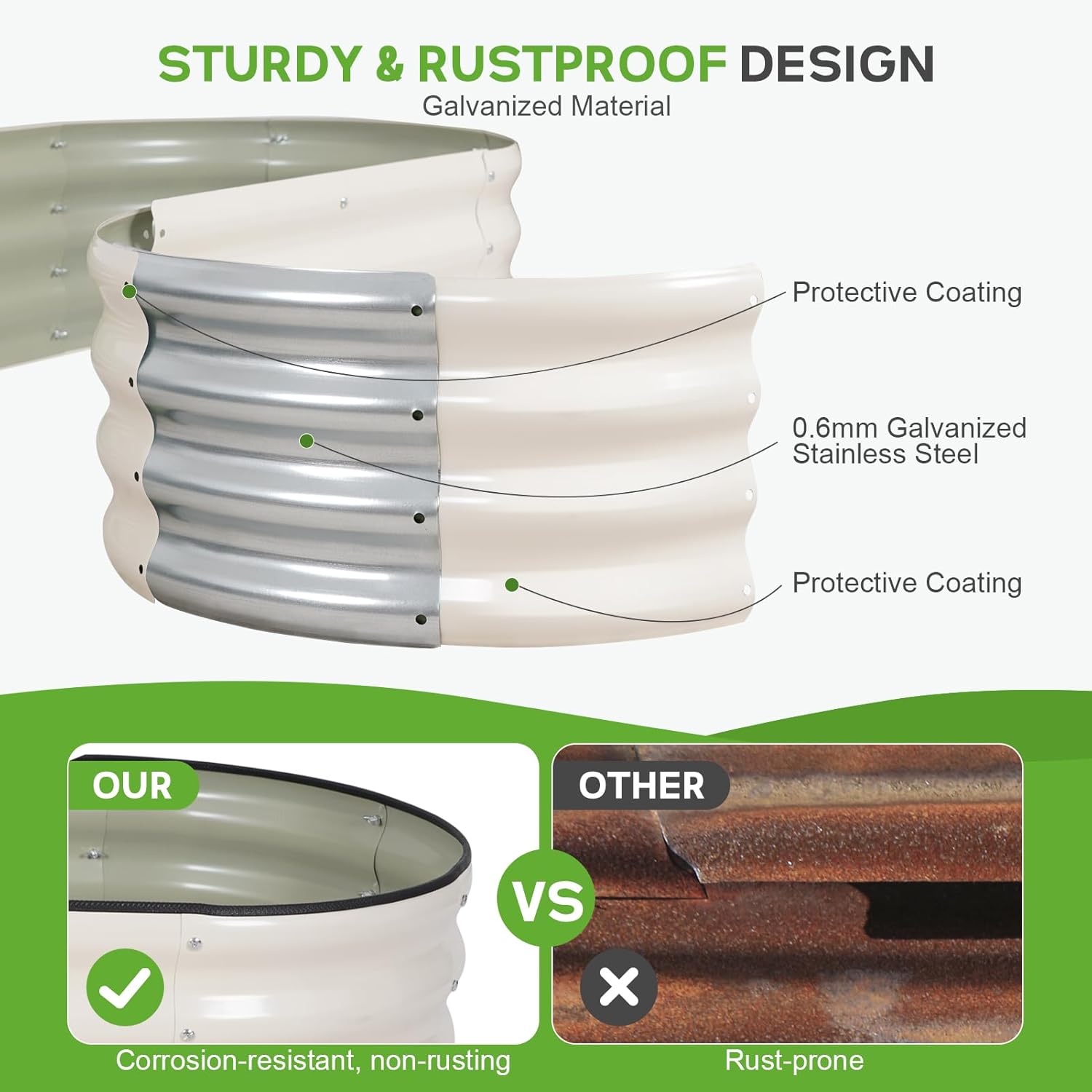 - 【 Durable and Long-lasting 】 BIRDSINYARD outdoor raised garden bed is made from 0.7mm thick galvanized steel,featuring a rust-resistant and corrosion-resistant coating.Garden planter effectively withstands humid weather and harsh conditions, ensuring it won't easily warp or rust with long-term use.