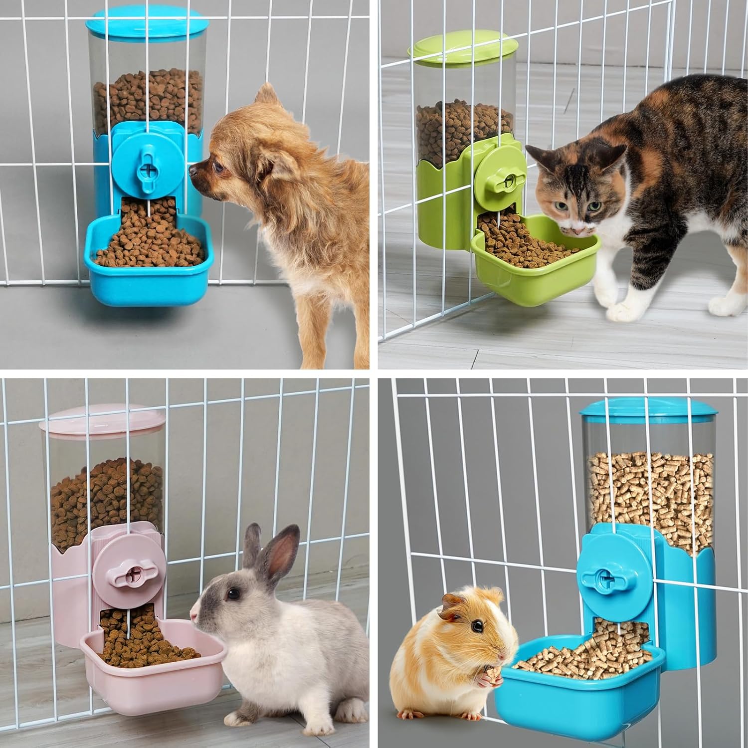 VANNON Small Animal Hanging Automatic Food Dispenser, 35oz Gravity Pet Feeder for Cage, Food Bowl for Rabbit Puppy Cat Ferret Guinea Pig Chinchilla Parrot (Blue)