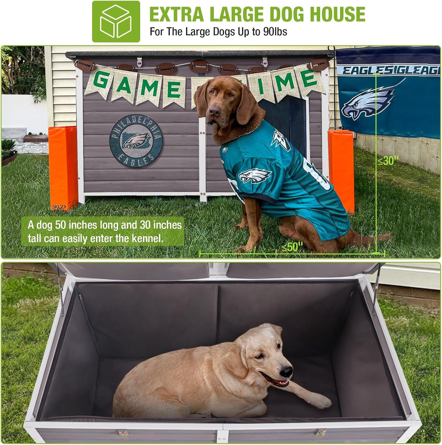 - Large Space: Overall size:35.4" D × 59.1" L × 35.4" H, Internal size: 29.1" L × 53.1" W × 28.5" H, perfect for large to extra large dogs