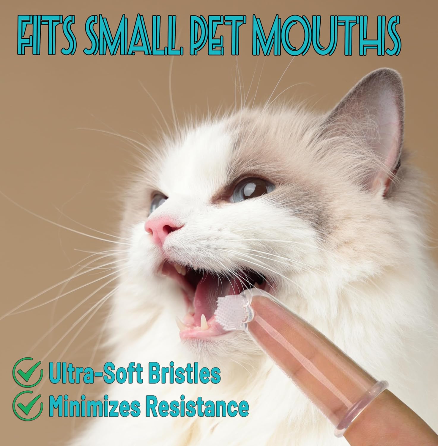 - Finger Toothbrush – Soft, Versatile, and Convenient: Made with soft, food-grade silicone bristles, the finger toothbrush features a compact 0.47-inch brush head for better access to small pet mouths. This set also includes a storage case, keeping the toothbrushes clean and organized. Additionally, the silicone bristles can be used to gently clean blackheads caused by cat acne or remove tear stains and eye discharge from your pet
