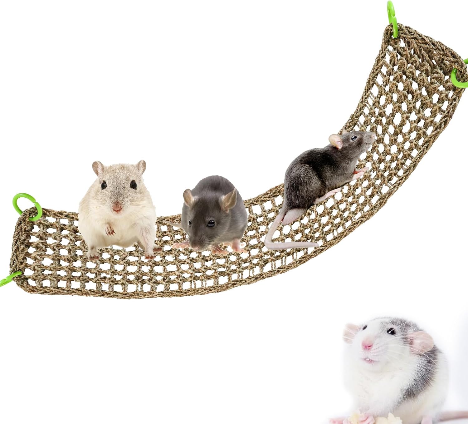 Rat Climbing Toys, 39 x 7 inch Small Animals Seagrass Mat Toy, Cat Climbing Toys, Natural Seagrass Woven Net Hammock with Hooks, Cage Accessories for Hamster Guinea Pig Parrot Parakeets Cockatiels