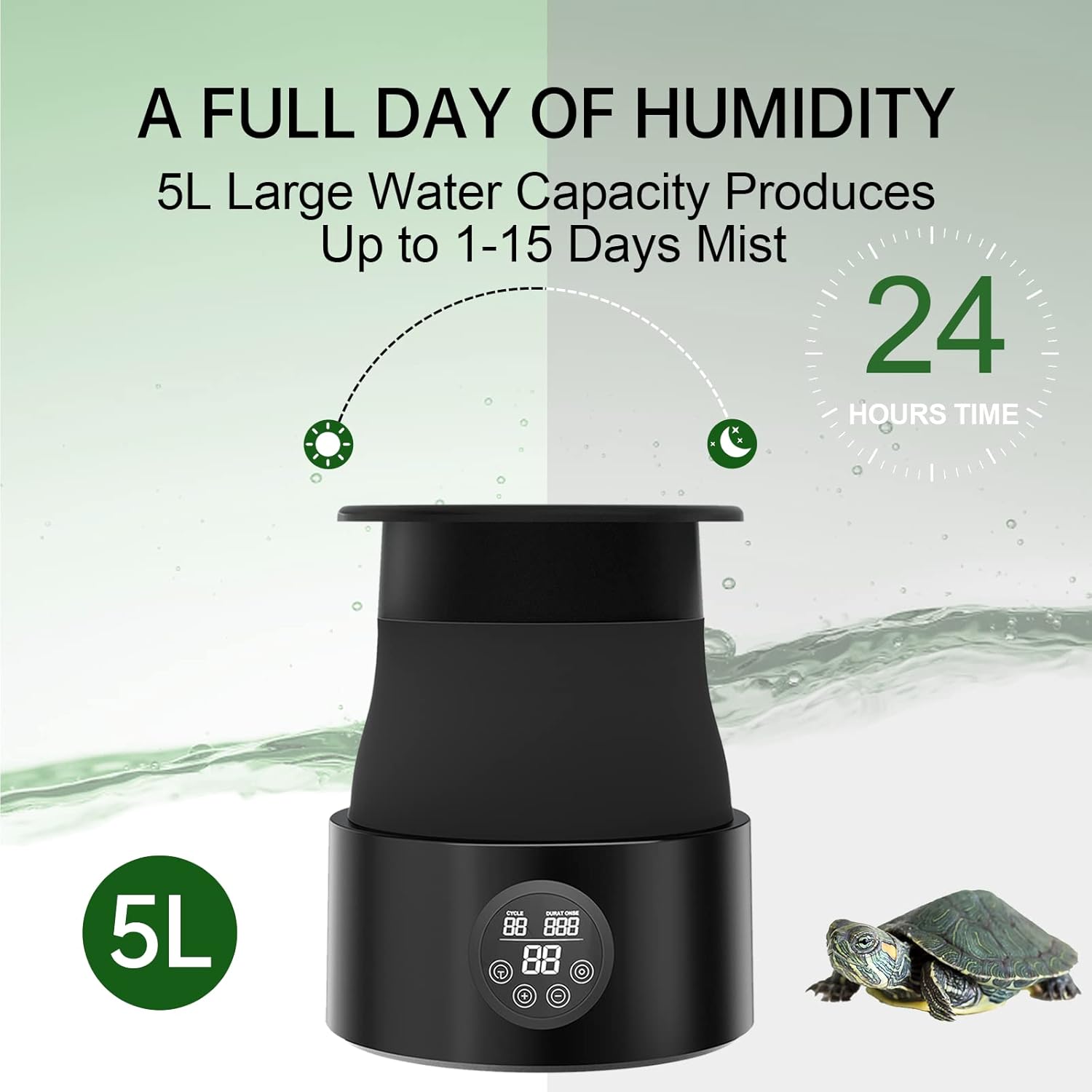 5L Foldable Automatic Reptile Mister For Reptile Terrarium with Timer, Reptile Fogger System with 360°Adjustable Nozzles,Reptile Humidifier for Lizard Snake Amphibian Frog Plants Terrarium