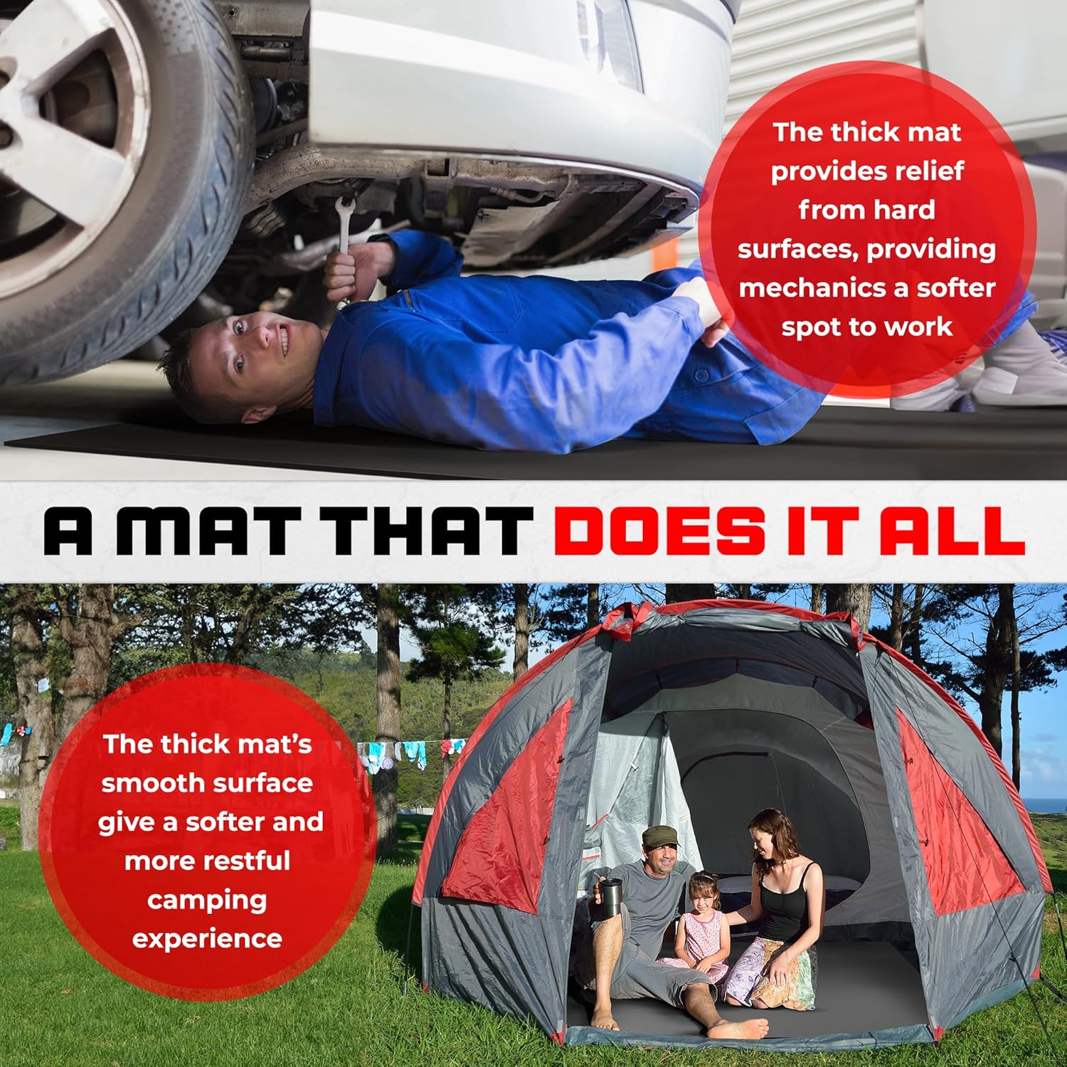 - EXPAND YOUR FITNESS SPACE using our extra wide workout mat. Whether you're into yoga, bodybuilding, or cardio, these exercise mats provide ample room for full-body movements. It's also great for kids' playrooms, offering a soft surface for their activities and for mechanics working under vehicles on hard surfaces