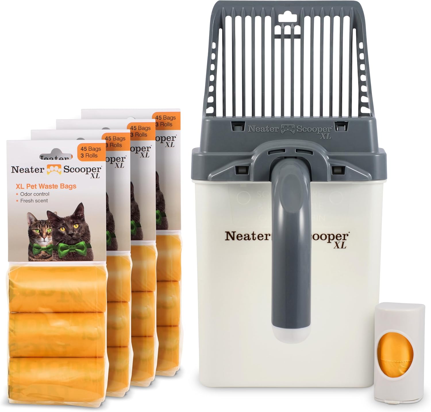 - REFILL BAGS & DISPENSER INCLUDED: Includes 195 lavender-scented refill bags and a dispenser that attaches to your litter box. The bags are larger than standard pet waste bags and custom-fit for the Neater Scooper XL. For refills, choose orange Neater Scooper XL refill bags for a perfect fit.