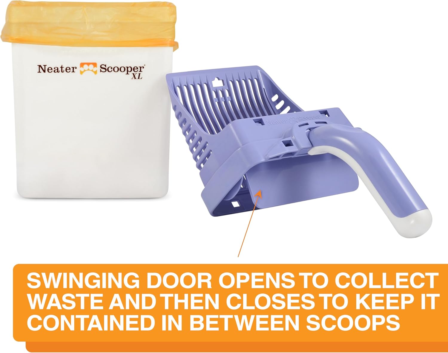 • REFILL BAGS & DISPENSER INCLUDED: Includes 60 lavender-scented refill bags and a dispenser that attaches to your litter box. The bags are larger than standard pet waste bags and custom-fit for the Neater Scooper XL. For refills, choose orange Neater Scooper XL refill bags for a perfect fit.