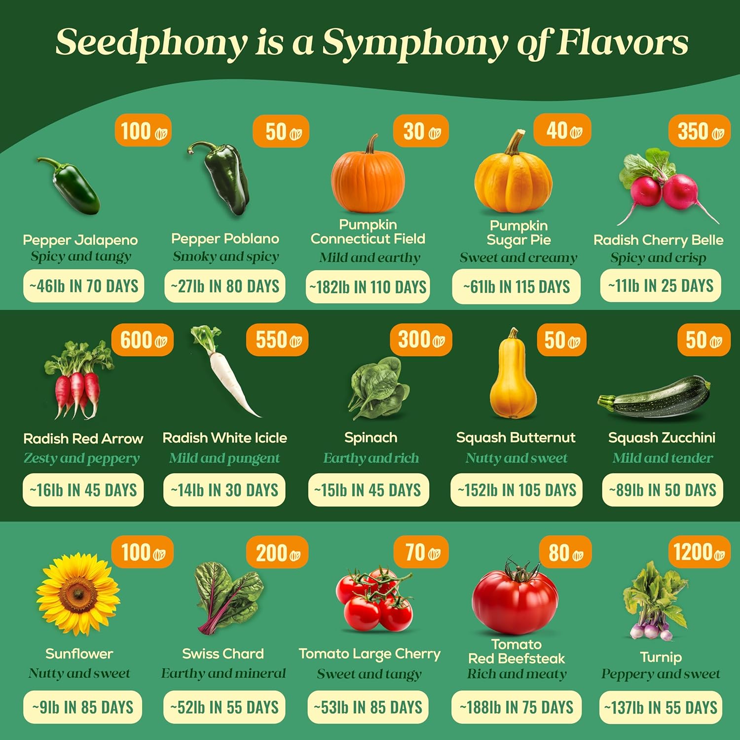 - Complete Gardening Kit: vegetables seeds for hydroponic garden indoor comes in a waterproof, resealable bag with individual heirloom vegetable seeds packets. Includes gardening tools: leaf clipper, seed dibber, tweezers, weeding fork, and widger tool, perfect for both beginner gardeners and seasoned pros. Scan the QR code for a comprehensive growing guide and bonus culinary e-book.