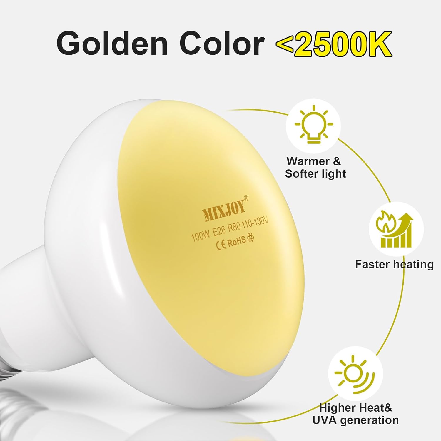 MIXJOY 2Pack Reptile Heat Lamp Bulbs 100W, 60% Intense Heat Bulb UVA Daylight Basking Spot Bulb for Reptiles, Turtle, Lizard, Tortoise, Bearded Dragon, Gecko, Chicken