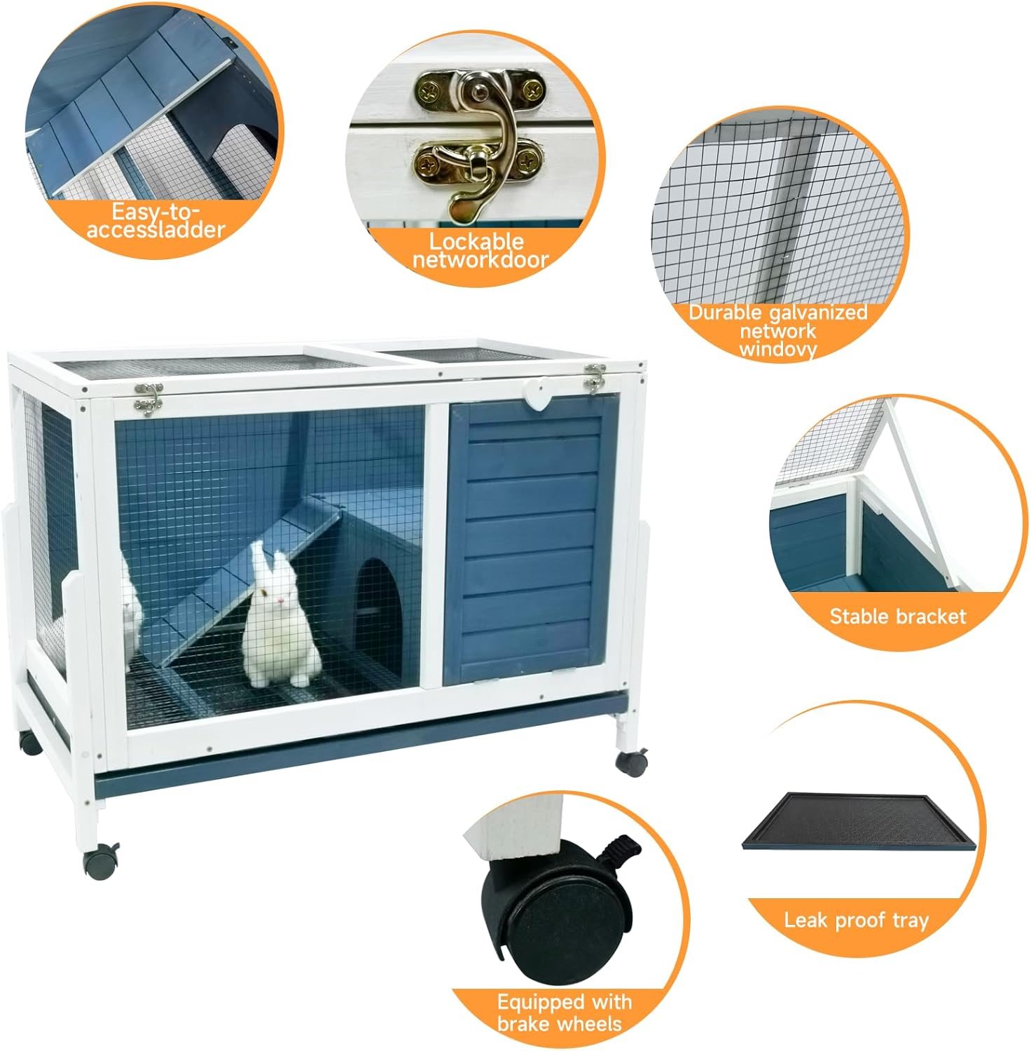 - Easy Cleaning: Bunny hutch indoor has a waste tray constructs the bottom of the entire pet box. It can be pulled out for regular cleaning. Lined with premium plastic layer, the tray ensures no leakage in long term use