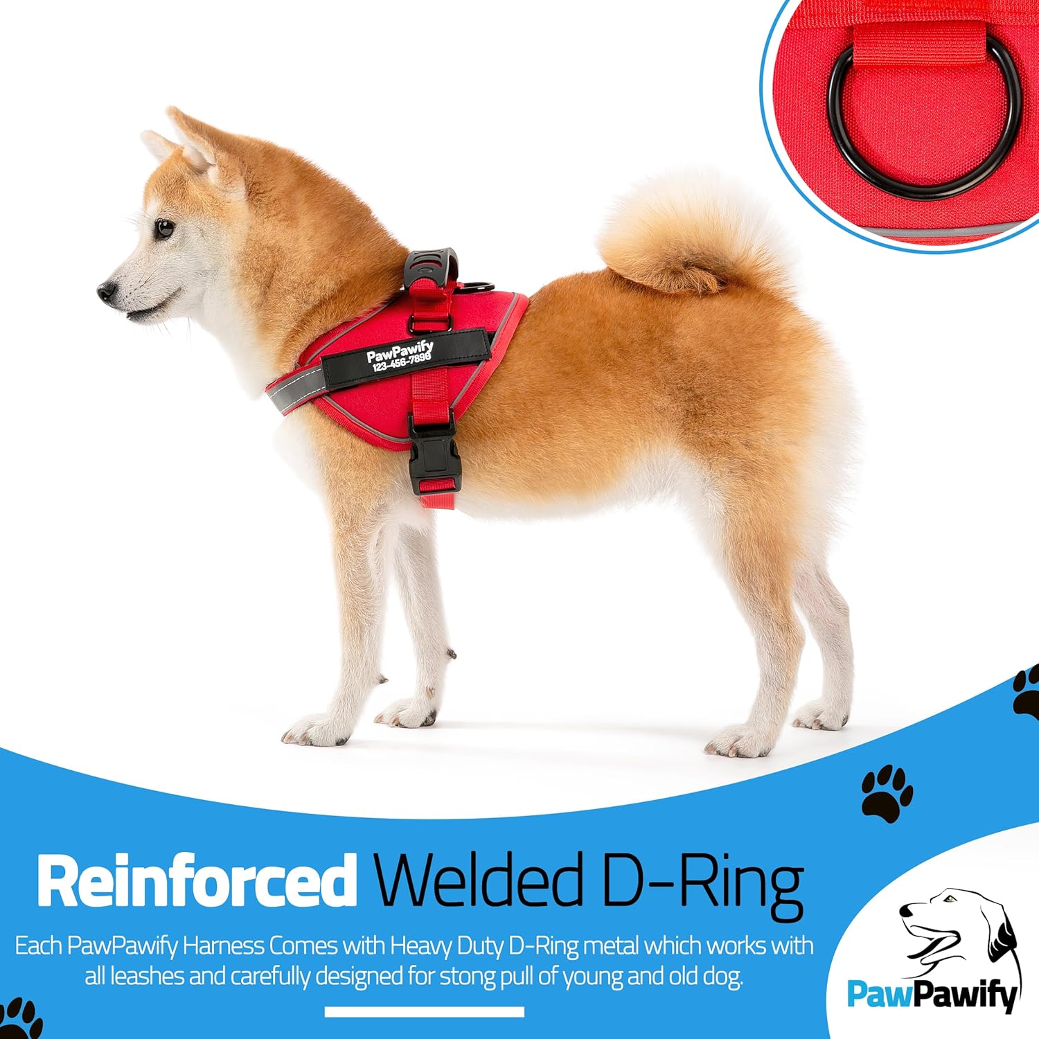 PawPawify Custom No Pull Dog Harness with Name and Phone Number, Heavy Duty Personalized Pet Vest to Prevent Tugging, Pulling, or Choking, Training and Walking (New Red, L (40-60 LBS))
