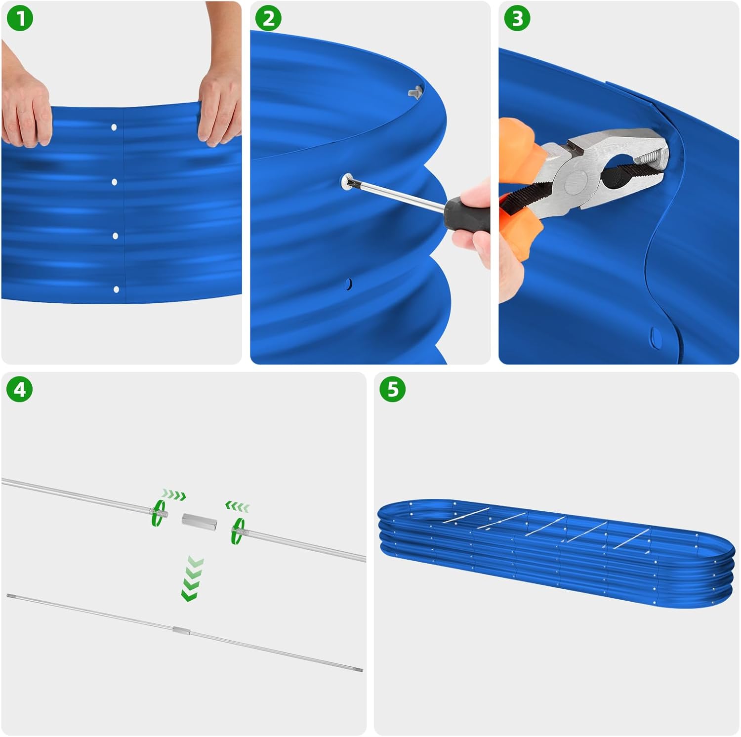 Land Guard 8×2×1ft Galvanized Raised Garden Bed Kit, 108 Gallon Capacity Raised Garden Boxes Outdoor, Oval Metal Raised Garden Beds for Vegetables, Blue(with 10 Connecting rods)