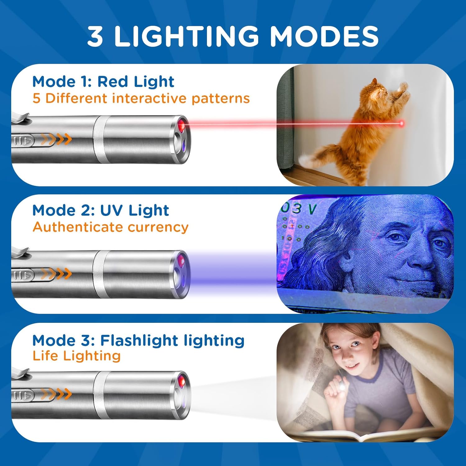 - 【Gifts for Your Pets】With this cat toy, your pet will not feel lonely, but also can enhance the relationship between you and your pet, It's the best gift for pets. What's more, you can turn on the switch with a single press instead of holding down on the button to keep lighting like most other cat flashlight do.