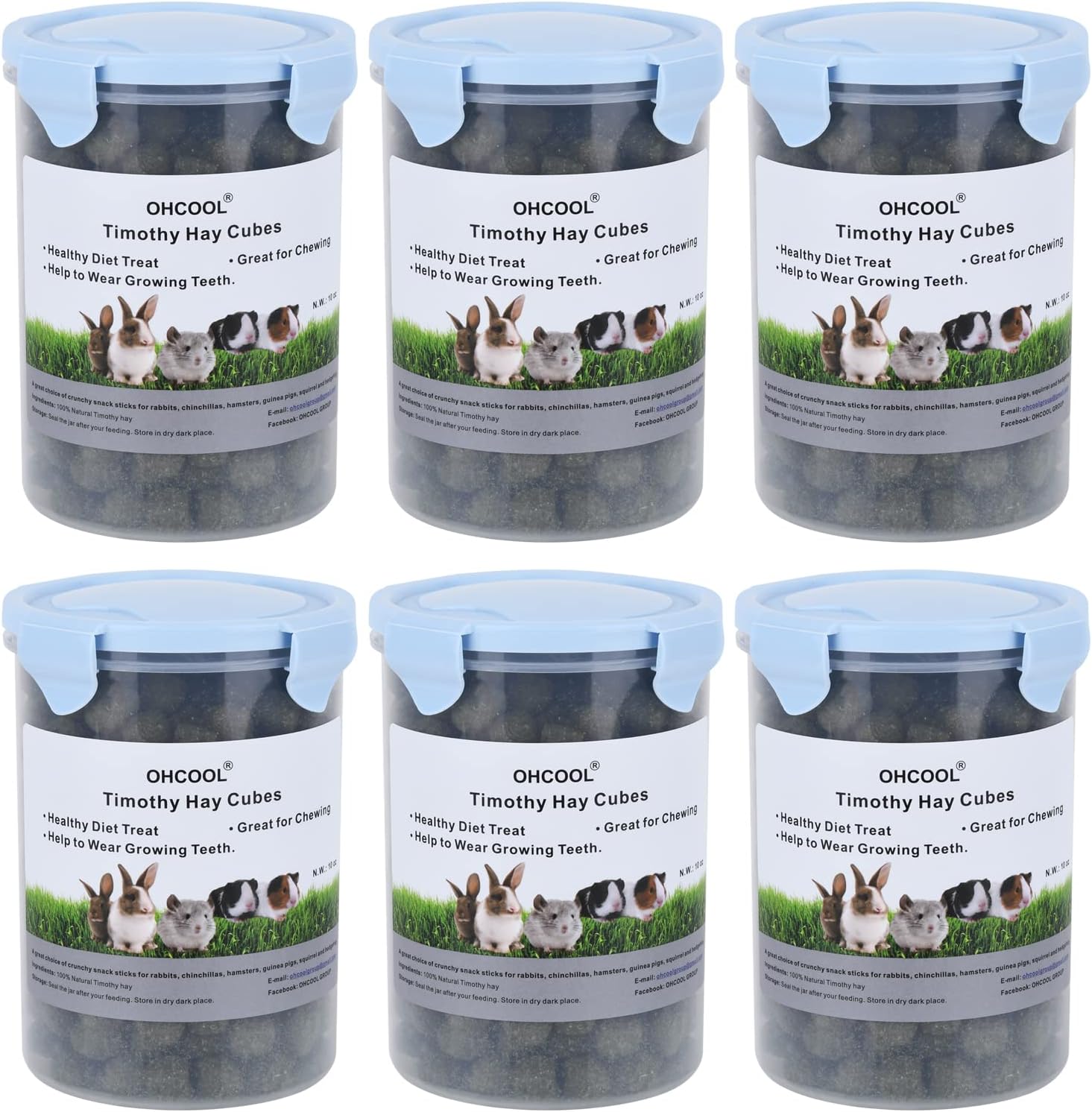 - √ 100% Timothy Hay --- A hard treat made from Natural OHCOOL timothy hay, baked from a fine grind instead of cubes with bits of coarse hay. Nutritious for your small animals.