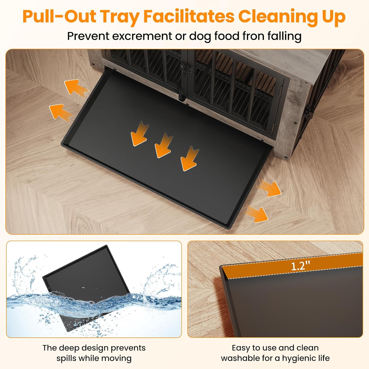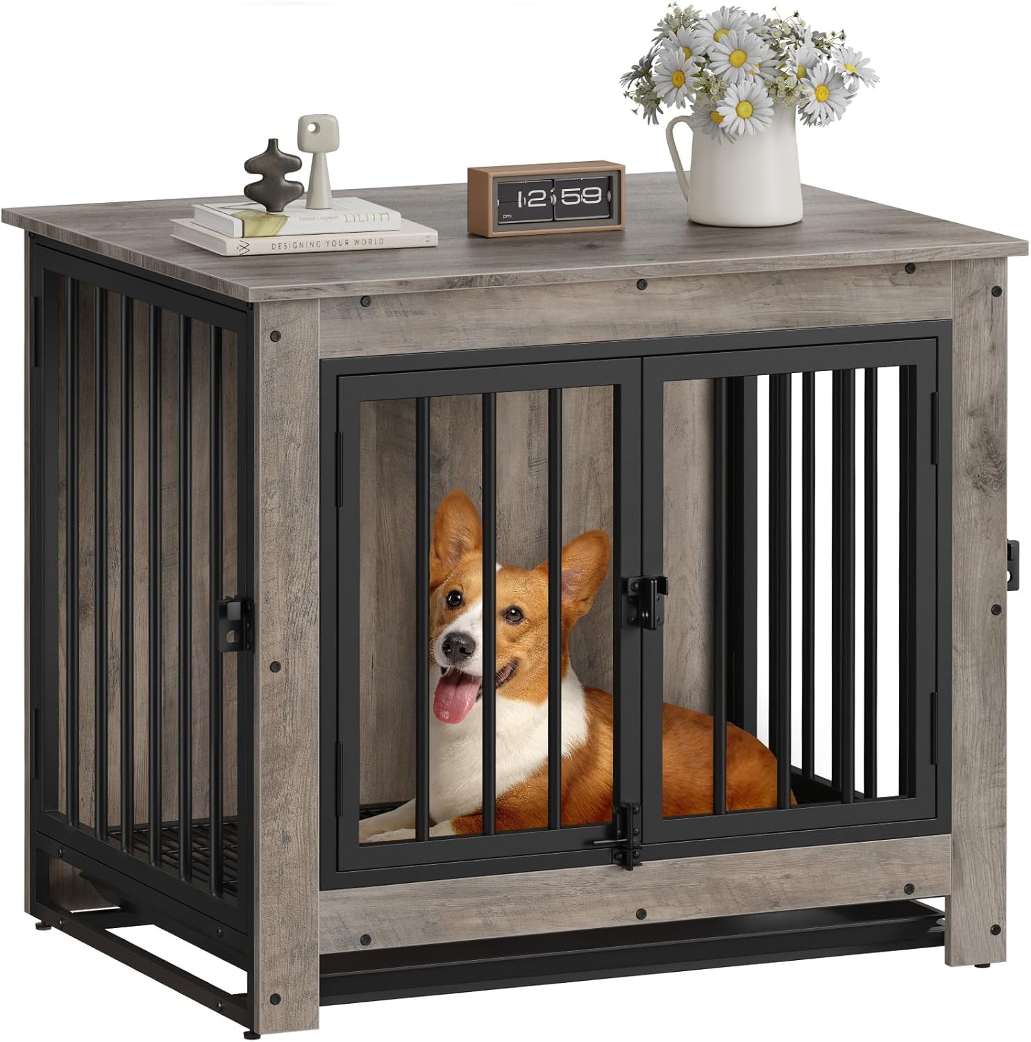 Dog Crate Furniture, Dog Crate End Table for Small and Medium Dogs,Wooden Cage Kennel Furniture Indoor, Modern Dog Crate with Multi-Purpose Removable Tray, Double-Doors Dog Furniture, Greige