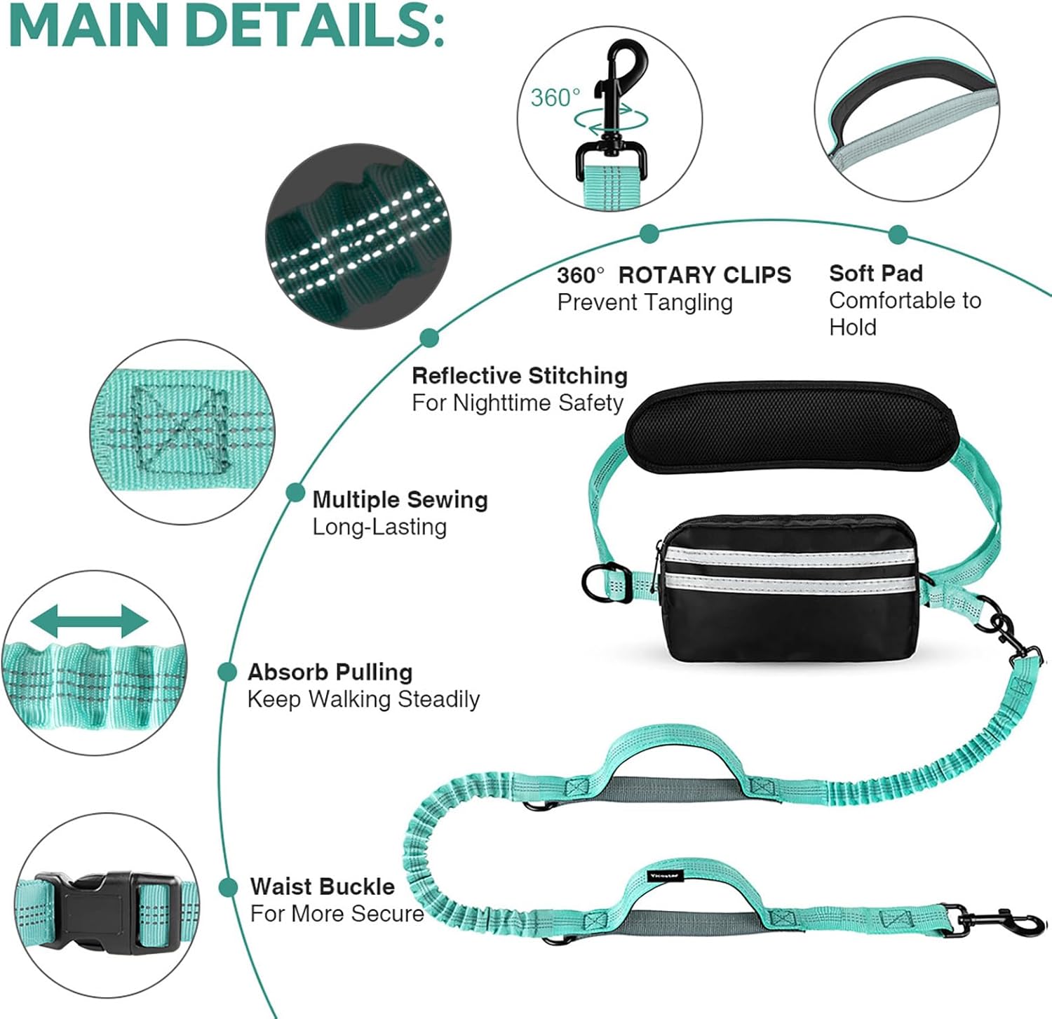 - Multifunctional Dog Walking Bag: This dog walking fanny pack has perfect size so, it's super nice to put your phone, poop bags, treats and house key in it while you are out about with your dogs and no bulging! Get ready to have the best time with your dog with the attached bag in a dog running leash hands free! Enjoy a hands-free walk, run experience with your furry friend!